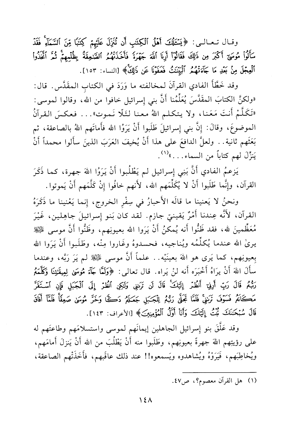 إن فى القرآن أن بنى إسرائيل طلبوا رؤية الله. وفى التوراة أنهم قالوا لموسى: " تكلم أنت معنا، ولا يتكلم معنا الله؛ لئلا يموت " [خر 20: 19] فعكس القرآن الموضوع.