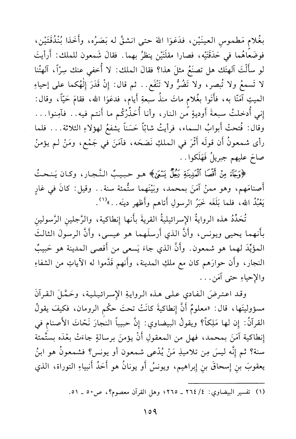 ويقولُ البيضاوي: إِنَّ حبيباً النجارَ نَحّاتَ الأَصنامِ في إِنطاكية آمَنَ بمحمد، فهل من المعقولِ أَنْ يؤمنَ برسالةٍ جاءَتْ بعْدَه بستِّمئة سنة؟