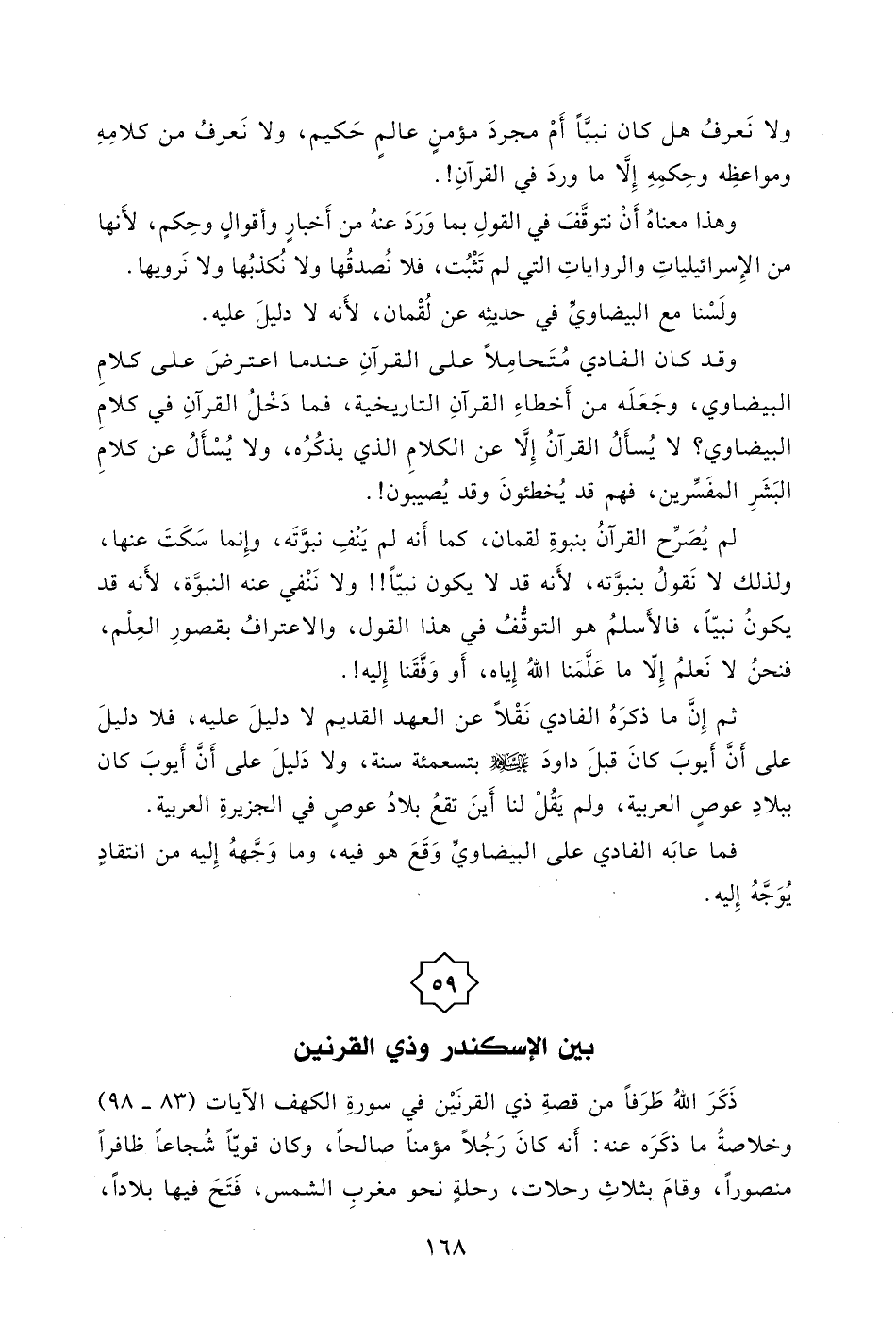 ولَسْنا مع البيضاويّ في حديثِه عن لُقْمان، لأَنه لا دليلَ عليه.
