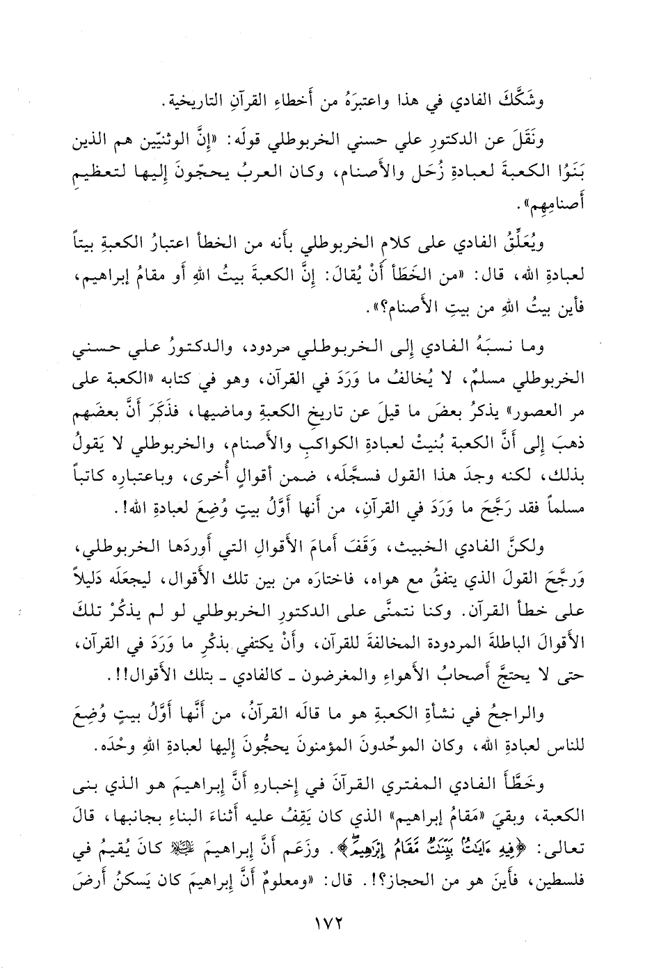 إنه جاء فى القرآن أن الكعبة أول بيت وضع للناس. وأنها كانت مقام إبراهيم، ومعلوم أن الكعبة من بناء الوثنيين كما جاء فى الكتب التاريخية.