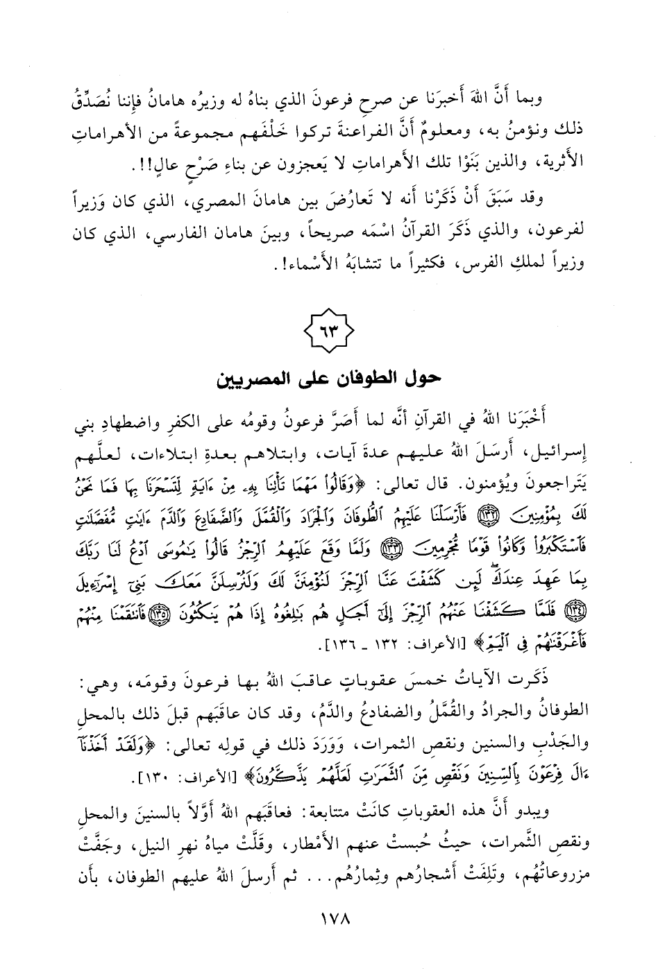 وَقَالُوا مَهْمَا تَأْتِنَا بِهِ مِنْ آيَةٍ لِتَسْحَرَنَا بِهَا فَمَا نَحْنُ لَكَ بِمُؤْمِنِينَ (132) فَأَرْسَلْنَا عَلَيْهِمُ الطُّوفَانَ وَالْجَرَادَ وَالْقُمَّلَ وَالضَّفَادِعَ وَالدَّمَ آيَاتٍ مُفَصَّلَاتٍ فَاسْتَكْبَرُوا وَكَانُوا قَوْمًا مُجْرِمِينَ (133) وَلَمَّا وَقَعَ عَلَيْهِمُ الرِّجْزُ قَالُوا يَا مُوسَى ادْعُ لَنَا رَبَّكَ بِمَا عَهِدَ عِنْدَكَ لَئِنْ كَشَفْتَ عَنَّا الرِّجْزَ لَنُؤْمِنَنَّ لَكَ وَلَنُرْسِلَنَّ مَعَكَ بَنِي إِسْرَائِيلَ (134) فَلَمَّا كَشَفْنَا عَنْهُمُ الرِّجْزَ إِلَى أَجَلٍ هُمْ بَالِغُوهُ إِذَا هُمْ يَنْكُثُونَ (135) فَانْتَقَمْنَا مِنْهُمْ فَأَغْرَقْنَاهُمْ فِي الْيَمِّ بِأَنَّهُمْ كَذَّبُوا بِآيَاتِنَا وَكَانُوا عَنْهَا غَافِلِينَ (136) .
