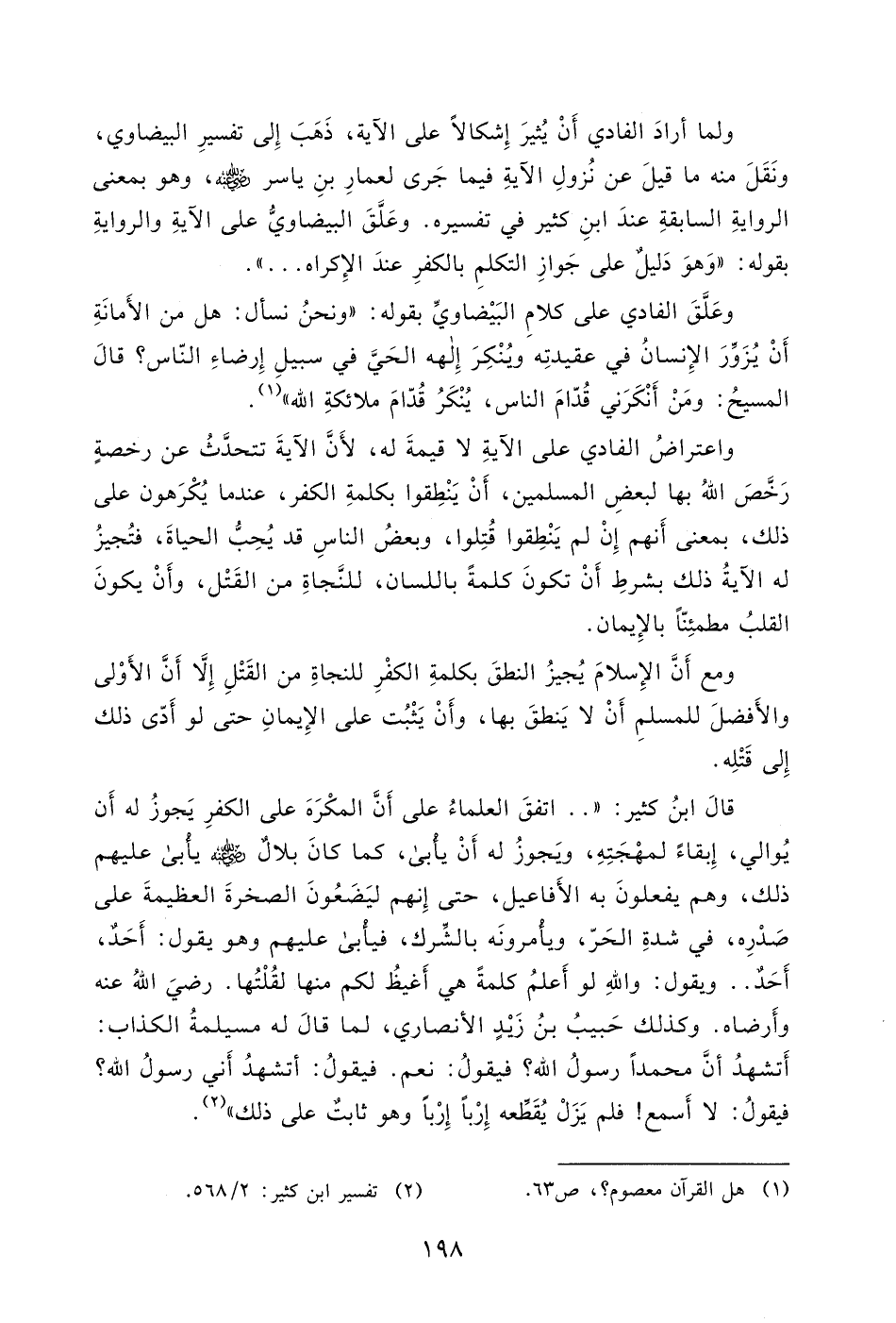ولما أرادَ الفادي أَنْ يُثيرَ إِشكالاً على الآية، ذَهَبَ إِلى تفسيرِ البيضاوي،