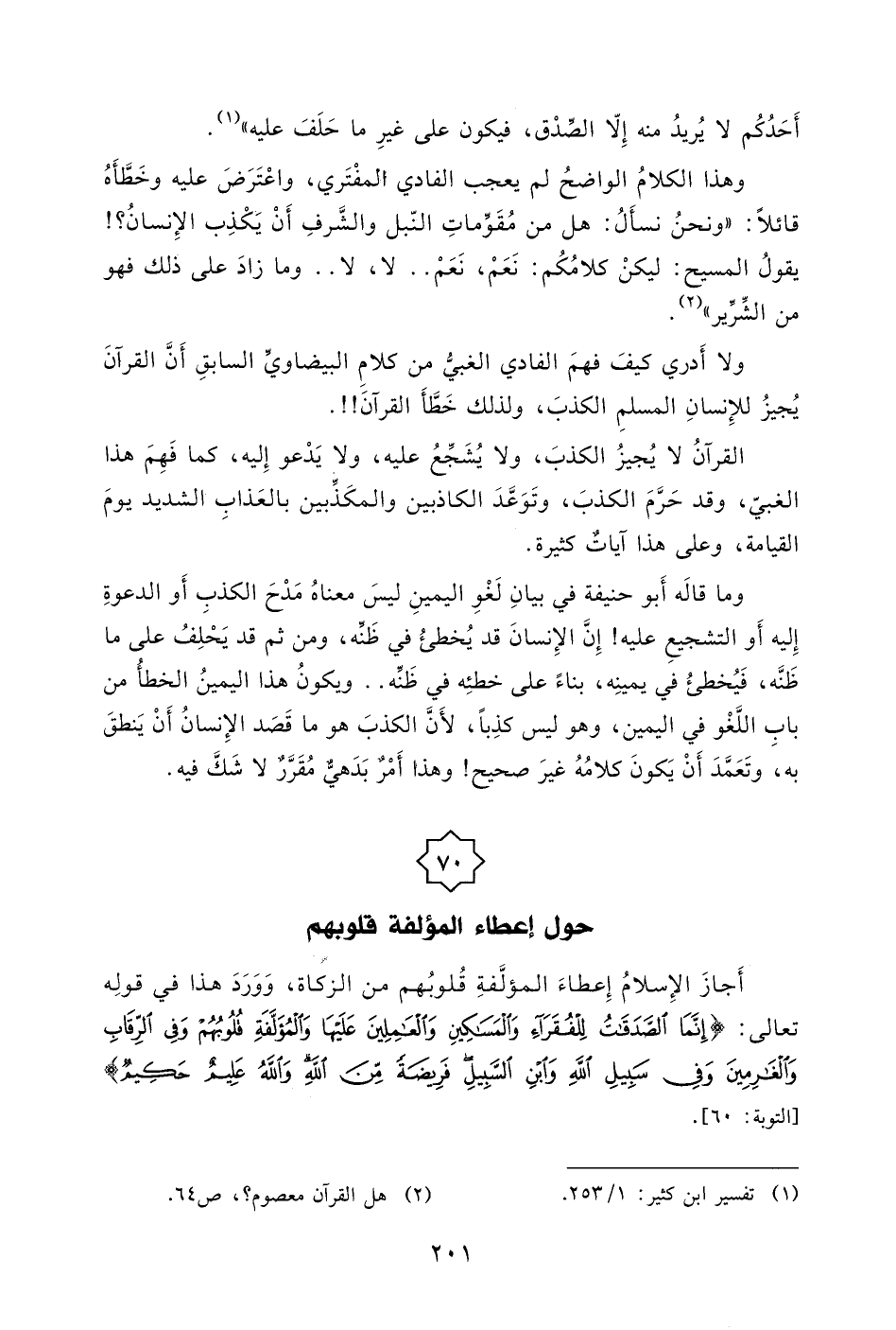 القرآنُ لا يُجيزُ الكذبَ، ولا يُشَجِّعُ عليه، ولا يَدْعو إِليه، كما فَهِمَ هذا