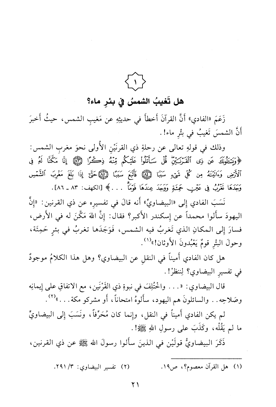 زَعَمَ " الفادي " أَنَّ القرآنَ أَخطأَ في حديثِهِ عن مَغيبِ الشمس، حيثُ أَخبرَ