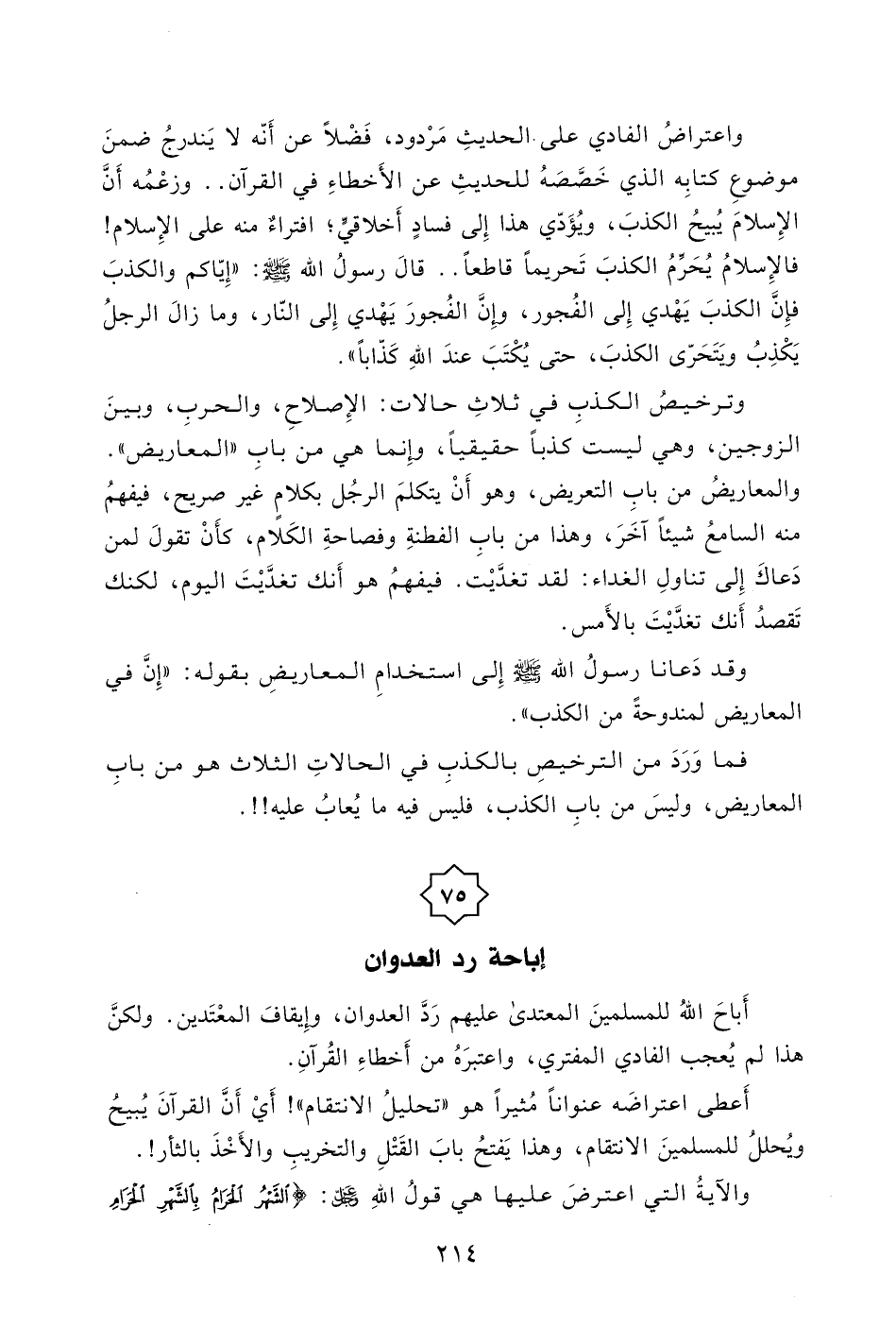 وزعْمُه أَنَّ الإِسلامَ يُبيحُ الكذبَ، ويُؤَدّي هذا إِلى فسادٍ أَخلاقي؟