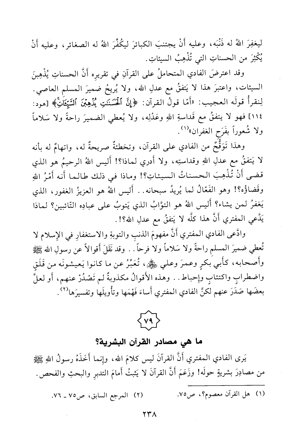 وقد اعترضَ الفادي المتحاملُ على القرآنِ في تقريرِه أَنَّ الحسناتِ يُذْهِبنَ