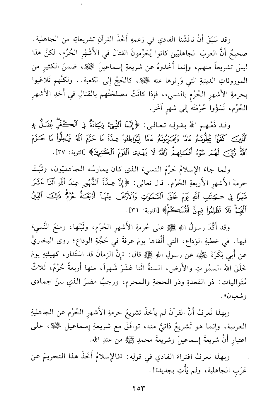 وبهذا نَعرفُ أَنَّ القرآنَ لم يأخذْ تشريعَ حرمةِ الأَشهرِ الحُرُمِ عن الجاهليةِ