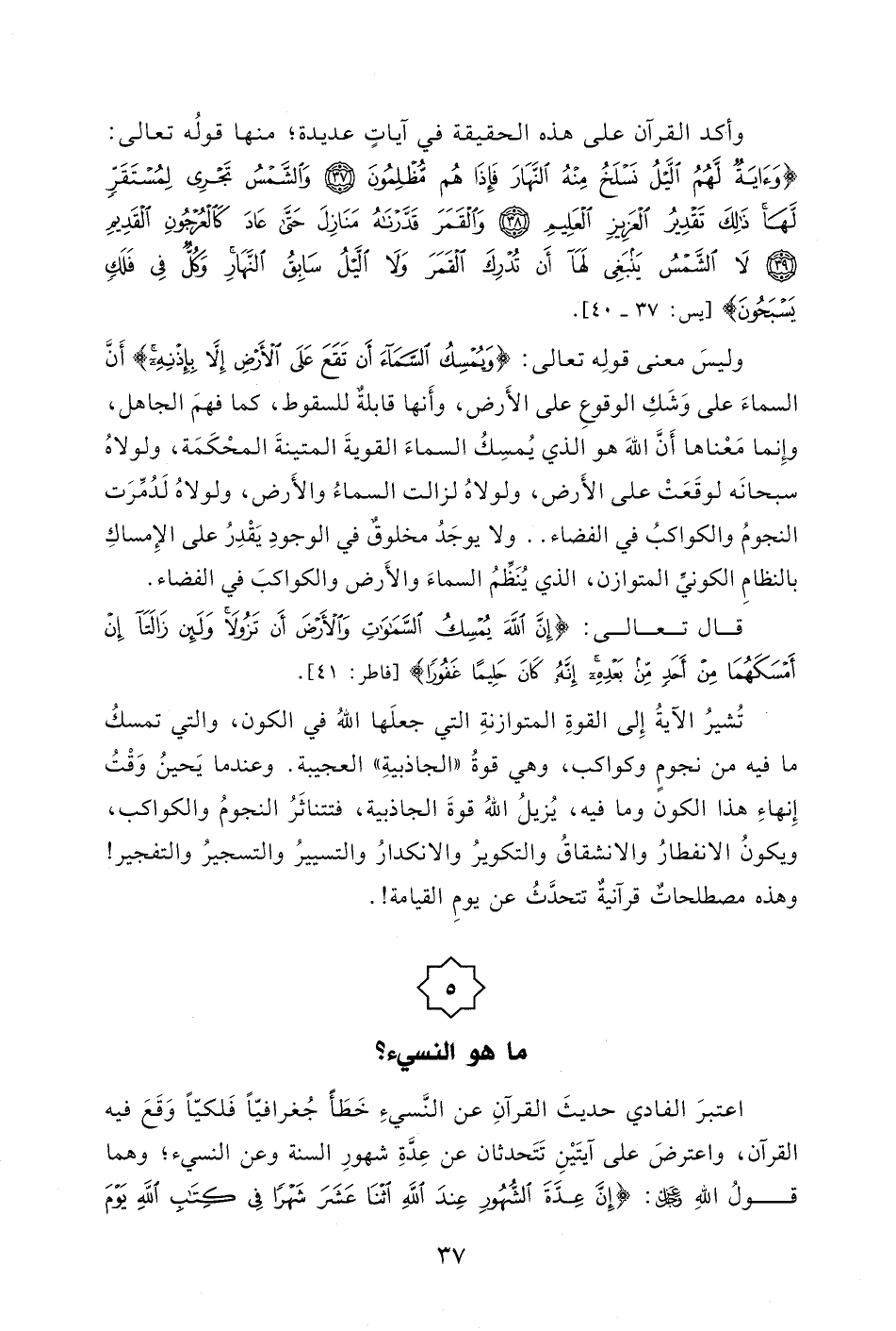 اعتبرَ الفادي حديثَ القرآنِ عن النَّسيءِ خَطَأً جُغرافيّاً فَلكيّاً وَقَعَ فيه