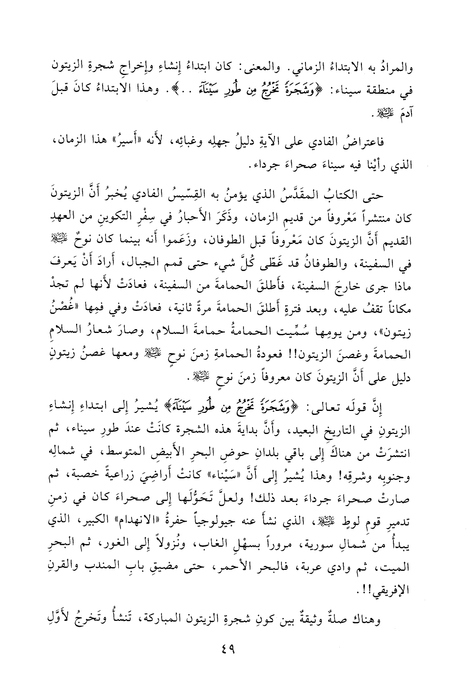 الزيتونِ في التاريخِ البعيد، وأَنَّ بدايةَ هذه الشجرة كانَتْ عندَ طورِ سيناء، ثم انتشرَتْ من هناكَ إِلى باقي بلدانِ حوضِ البحرِ الأَبيضِ المتوسط، في شمالِه