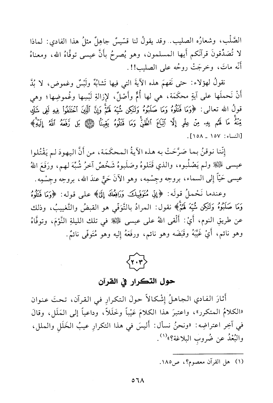 (1) جاء في كتاب شبهات المشككين ما نصه: