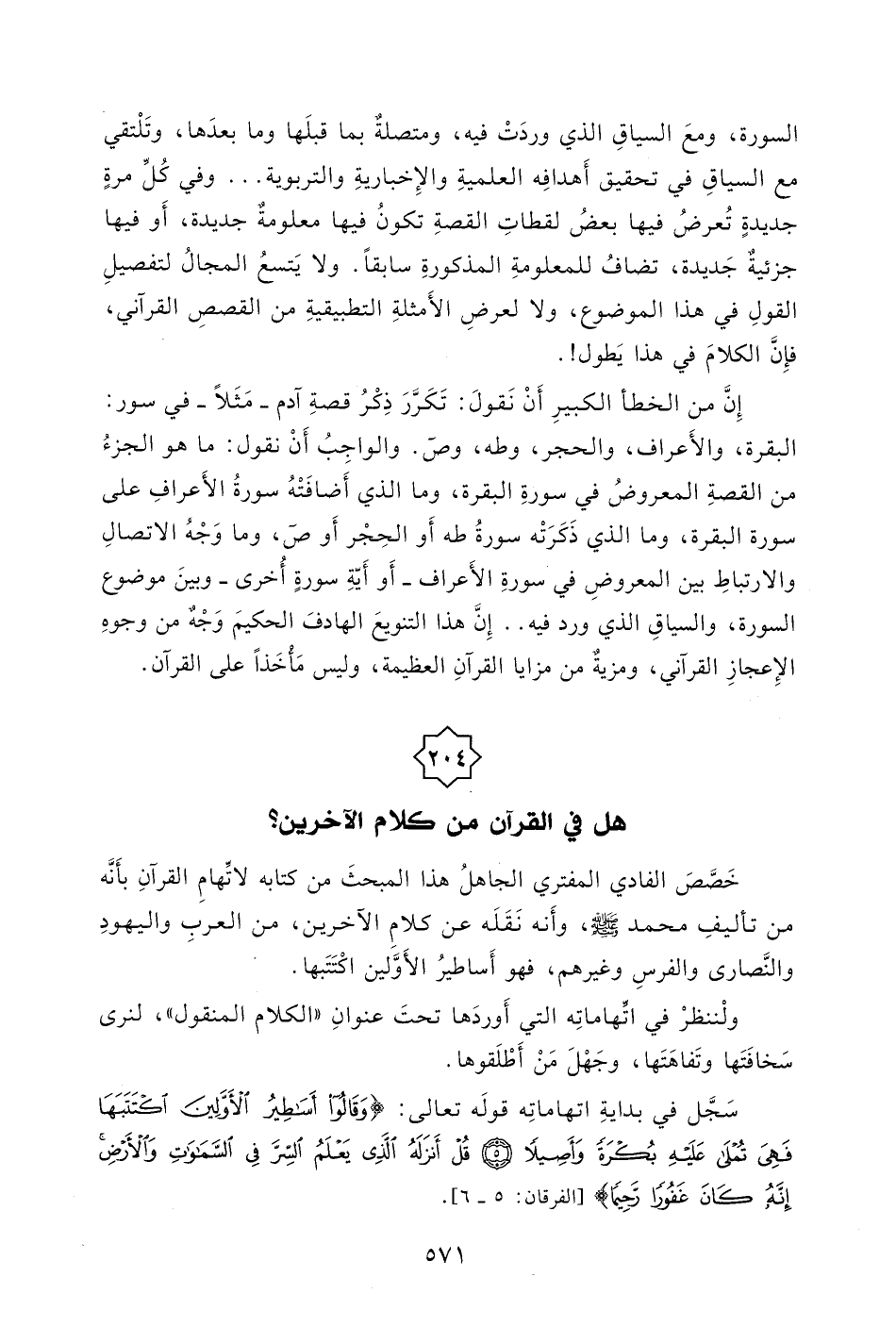 خَصَّصَ الفادي المفترِي الجاهلُ هذا المبحثَ من كتابه لاتِّهامِ القرآنِ بأَنَّه