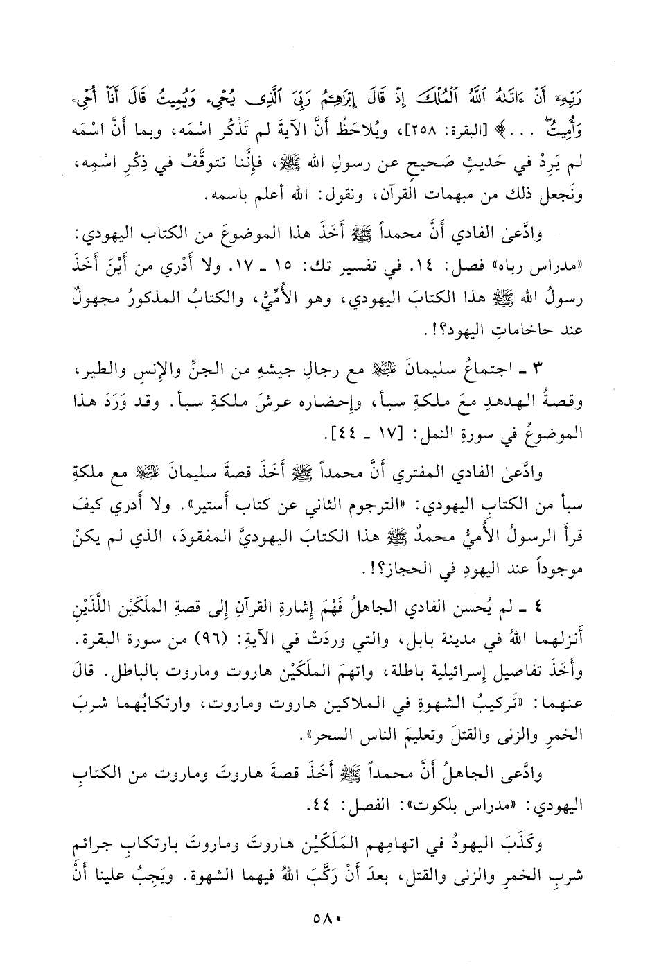 وادَّعى الجاهلُ أَنَّ محمداً - صلى الله عليه وسلم - أَخَذَ قصةَ هاروتَ وماروت من الكتابِ اليهودي: " مدراس بلكوت ": الفصل: 44.