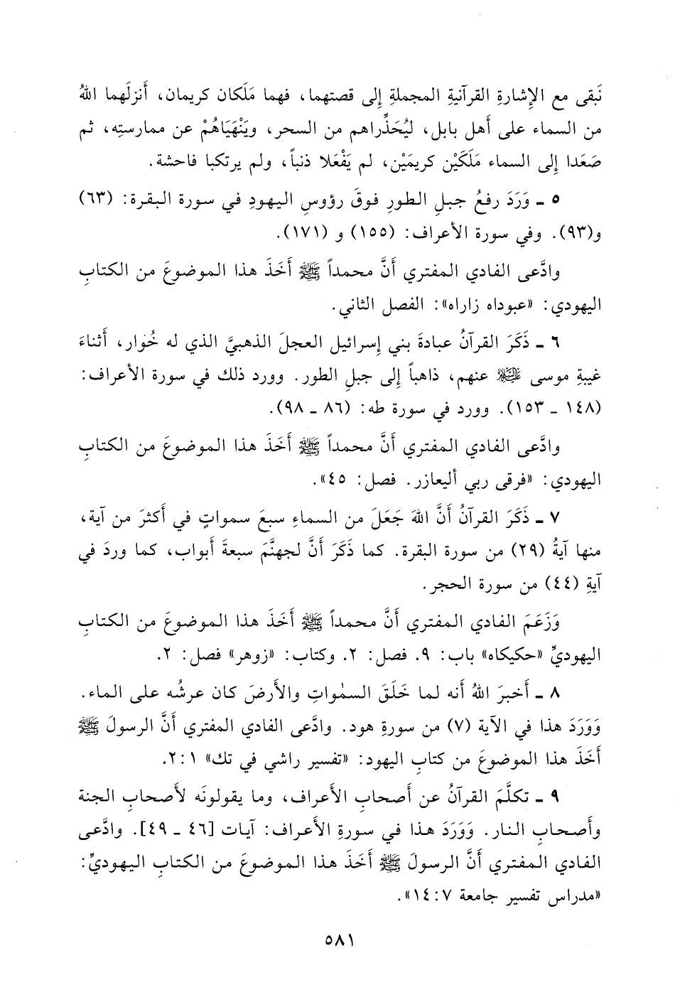 وَزَعَمَ الفادي المفترِي أَنَّ محمداً - صلى الله عليه وسلم - أَخَذَ هذا الموضوعَ من الكتابِ اليهوديِّ " حكيكا 5 " باب: 9. فصل: 2.