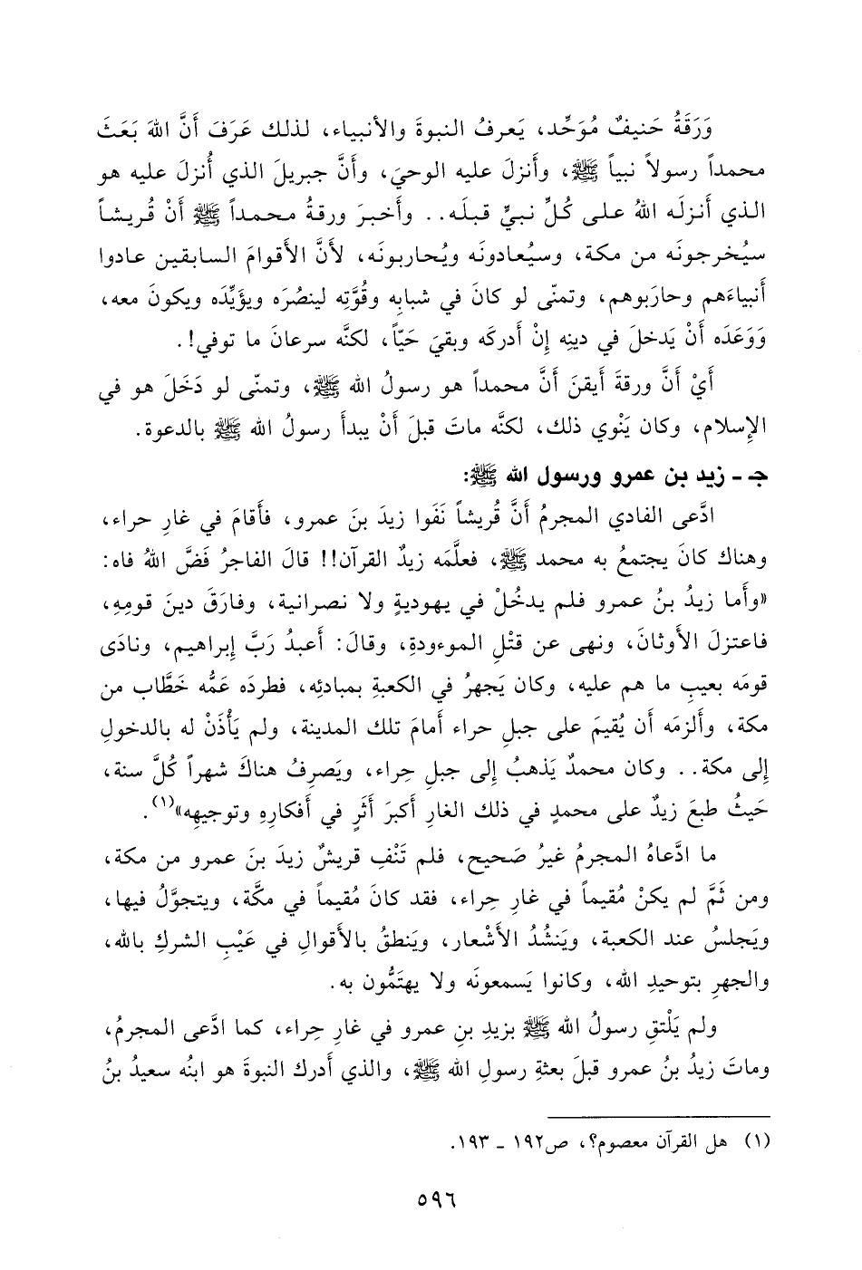 ولم يَلْتقِ رسولُ الله - صلى الله عليه وسلم - بزيدِ بنِ عمرو في غارِ حِراء، كما ادعى المجرمُ، وماتَ زيدُ بنُ عمرو قبلَ بعثةِ رسولِ الله - عليه السلام -، والذي أَدرك النبوةَ هو ابنُه