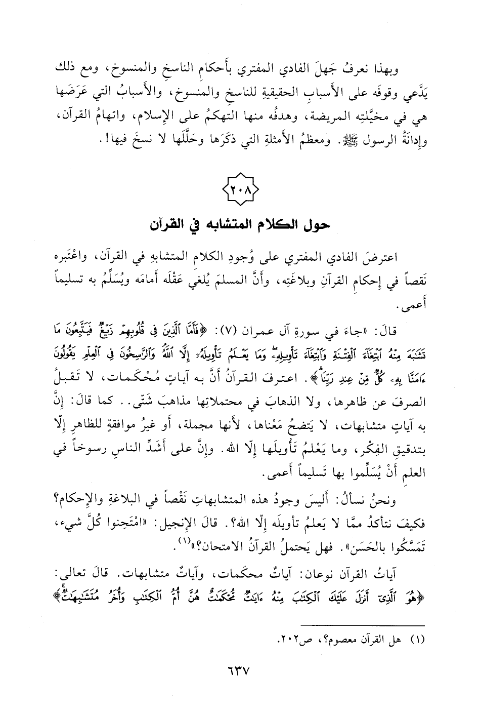 نَقصاً في إِحكامِ القرآنِ وبلاغَتِه، وأَنَّ المسلمَ يُلغي عَقْلَه أَمامَه ويُسَلِّمُ به تسليماً أَعمى.