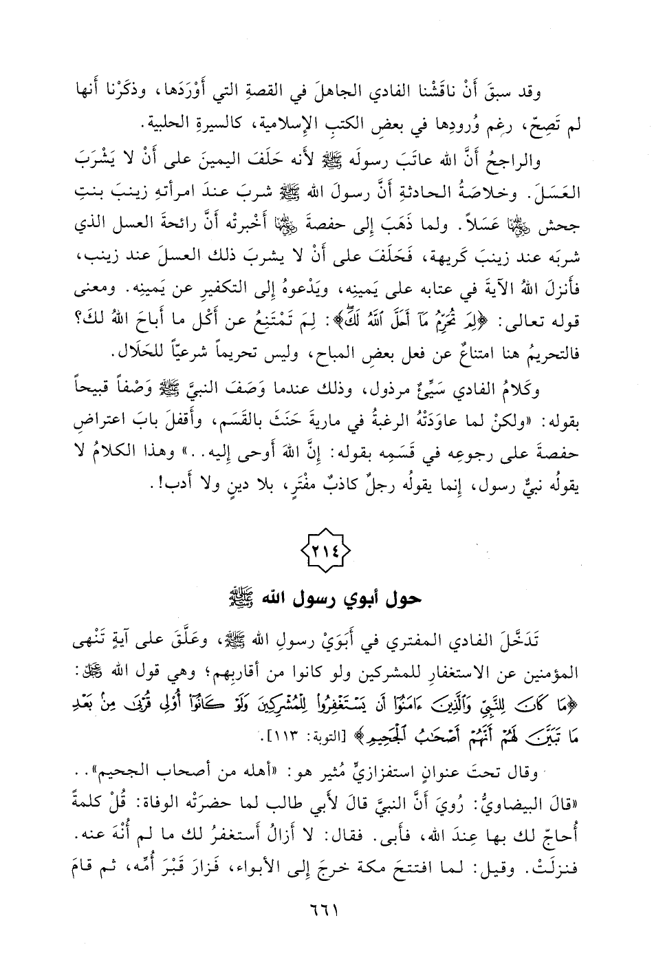 تَدَخَّلَ الفادي المفترِي في أَبَوَيْ رسولِ الله - صلى الله عليه وسلم -، وعَلَّقَ على آية تَنْهى المؤمنين عن الاستغفارِ للمشركين ولو كانوا من أقاربِهم، وهي قول الله - عز وجل -: (مَا كَانَ لِلنَّبِيِّ وَالَّذِينَ آمَنُوا أَنْ يَسْتَغْفِرُوا لِلْمُشْرِكِينَ وَلَوْ كَانُوا أُولِي قُرْبَى مِنْ بَعْدِ مَا تَبَيَّنَ لَهُمْ أَنَّهُمْ أَصْحَابُ الْجَحِيمِ (113) .