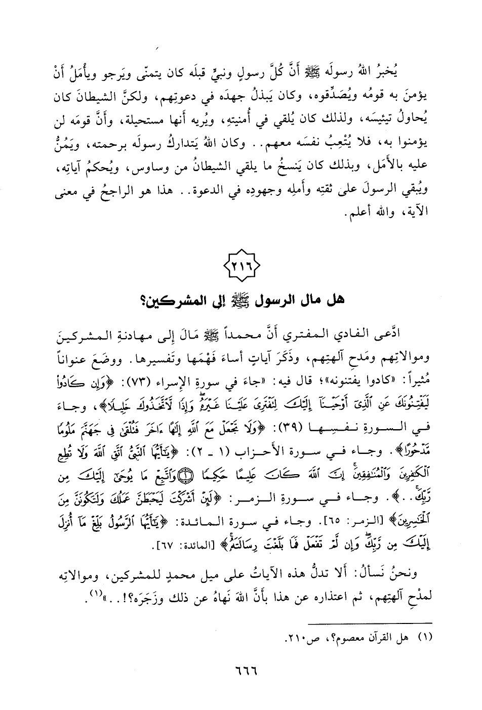 لمدْحِ آلهتِهم، ثم اعتذاره عن هذا بأَنَّ اللهَ نَهاهُ عن ذلك وزَجَرَه؟!.. ".