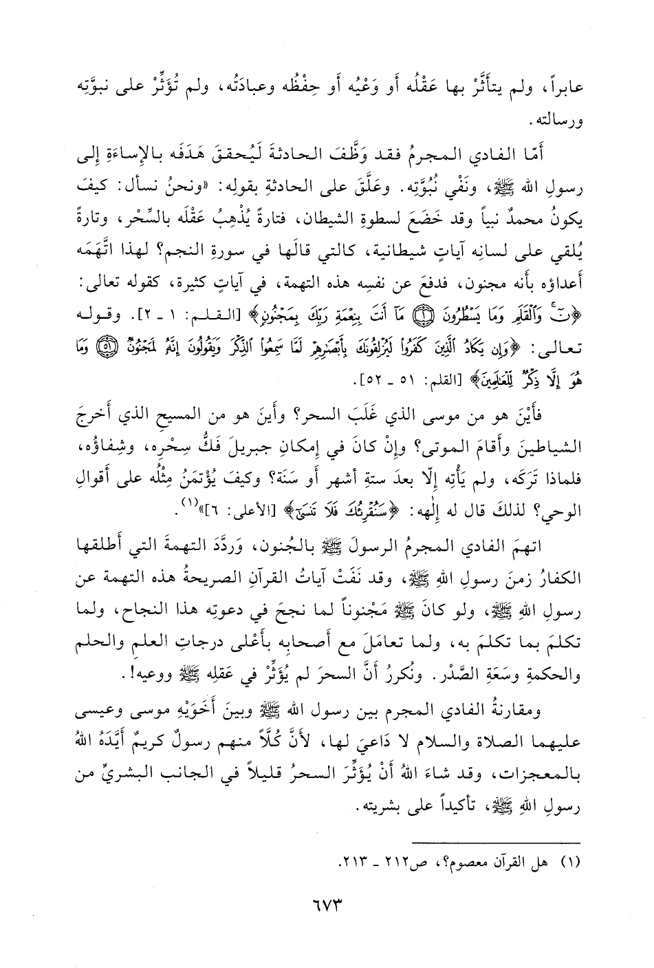 لهذا اتَّهَمَه أَعداؤه بأَنه مجنون، فدفعَ عن نفسِه هذه التهمة، في آياتٍ كثيرة، كقوله تعالى: (ن وَالْقَلَمِ وَمَا يَسْطُرُونَ (1) مَا أَنْتَ بِنِعْمَةِ رَبِّكَ بِمَجْنُونٍ (2) .