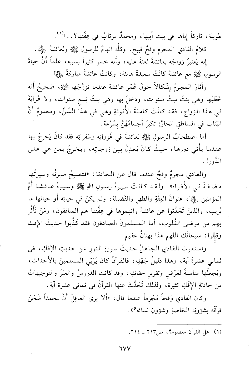 كلامُ الفادي المجرم وقحٌ قبيح، وكلُّه اتهامٌ للرسولِ - صلى الله عليه وسلم - ولعائشةَ - رضي الله عنها -.