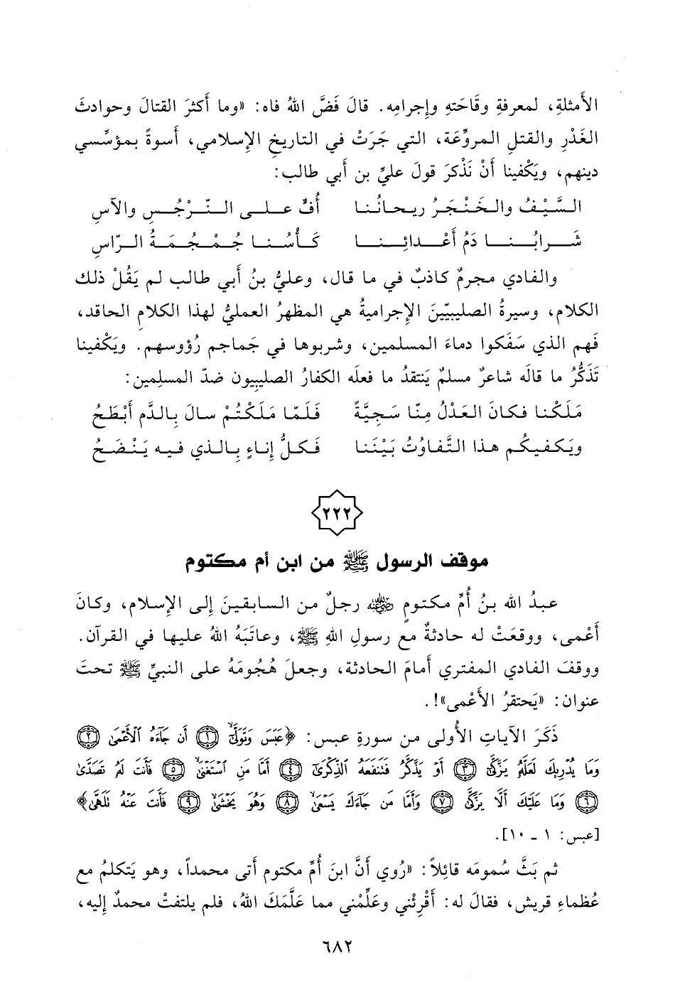 ذَكَرَ الآياتِ الأُولى من سورةِ عبس: (عَبَسَ وَتَوَلَّى (1) أَنْ جَاءَهُ الْأَعْمَى (2) وَمَا يُدْرِيكَ لَعَلَّهُ يَزَّكَّى (3) أَوْ يَذَّكَّرُ فَتَنْفَعَهُ الذِّكْرَى (4) أَمَّا مَنِ اسْتَغْنَى (5) فَأَنْتَ لَهُ تَصَدَّى (6) وَمَا عَلَيْكَ أَلَّا يَزَّكَّى (7) وَأَمَّا مَنْ جَاءَكَ يَسْعَى (8) وَهُوَ يَخْشَى (9) فَأَنْتَ عَنْهُ تَلَهَّى (10) .