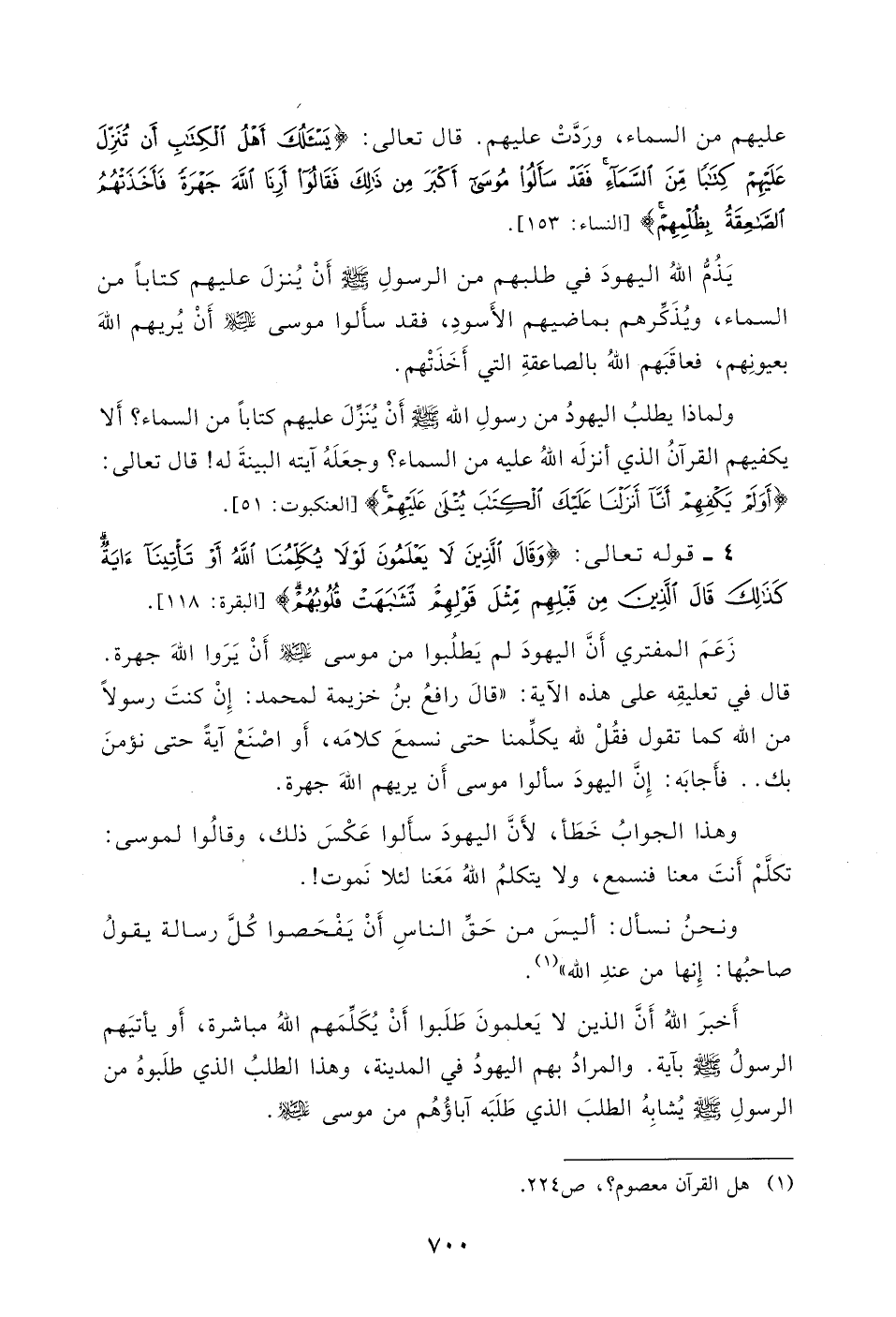 فأَجابَه: إِنَّ اليهودَ سألوا موسى أَن يريهم اللهَ جهرة.