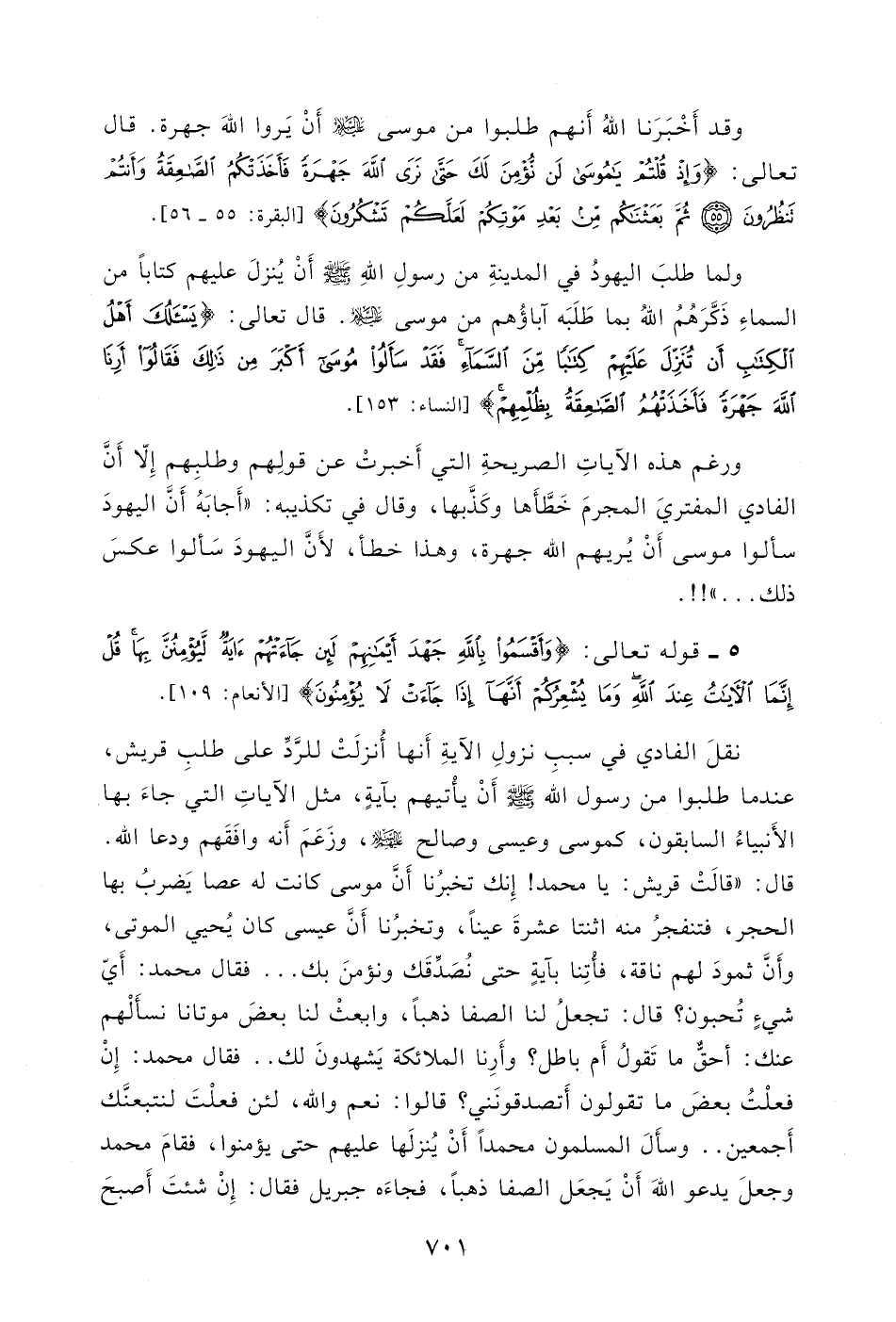 سألوا موسى أَنْ يُريهم الله جهرة، وهذا خطأ، لأَنَّ اليهودَ سَألوا عكسَ