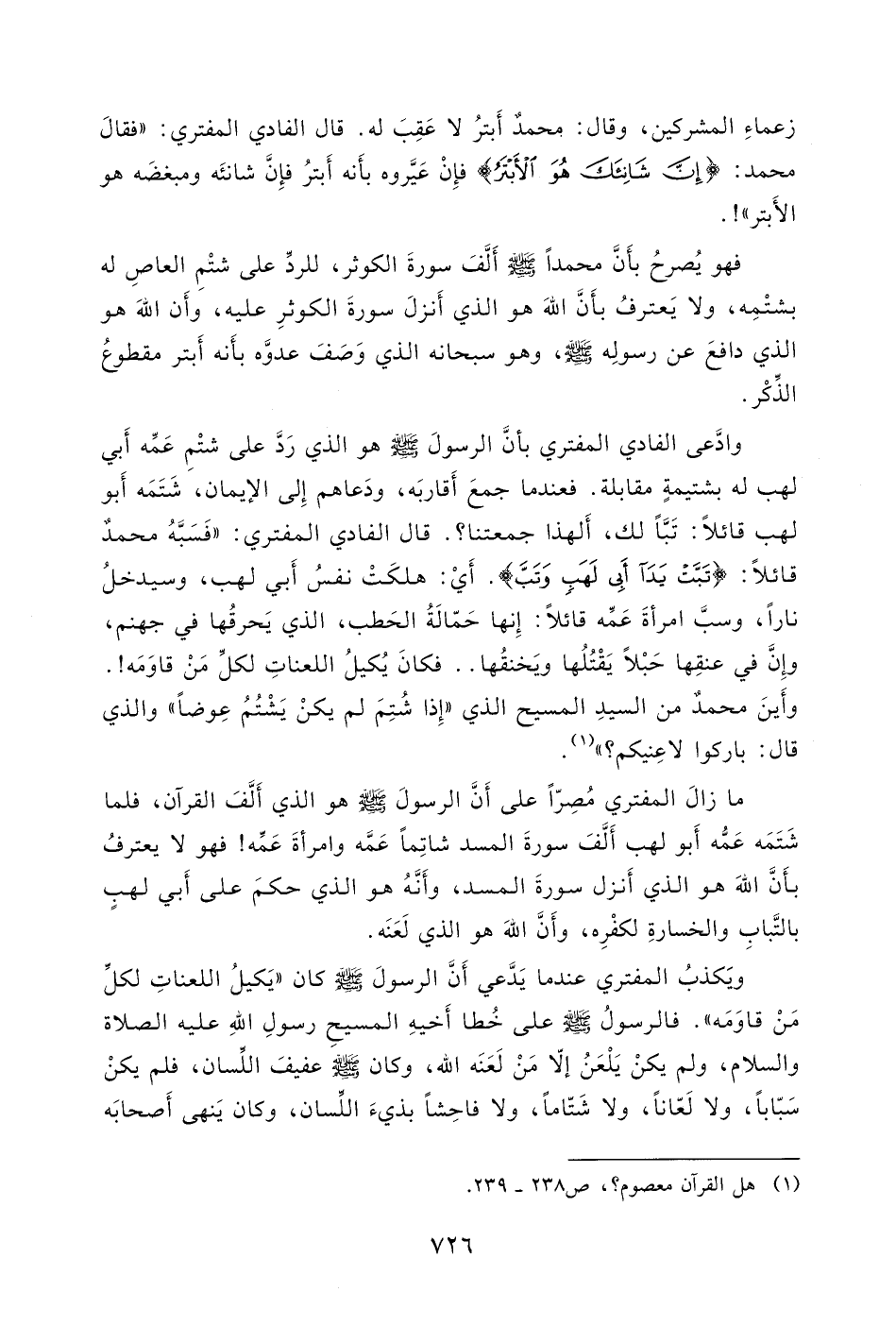 قال الفادي المفترِي: " فقالَ محمد: (إِنَّ شَانِئَكَ هُوَ الْأَبْتَرُ (3) .