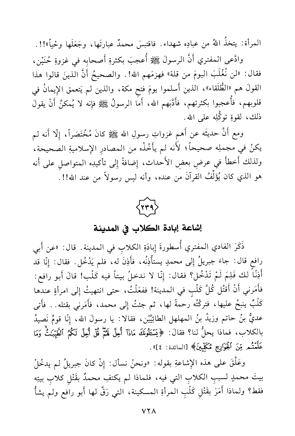 ومع أَنَّ حديثَه عن أَهم غزواتِ رسولِ الله - صلى الله عليه وسلم - كانَ مُخْتَصَراً، إِلّا أَنه لم يكنْ في مجملِه صحيحاً؛ لأَنه لم يأَخُذْه من المصادرِ الإِسلاميةِ الصحيحة، ولذلك أَخطأَ في عرضِ بعضِ الأَحداث، إِضافةً إِلى تأكيدِه المتواصلِ على أَنه هو الذي كان يُؤَلِّفُ القرآنَ من عنده، وأنه ليس رسولاً من عند الله!!.