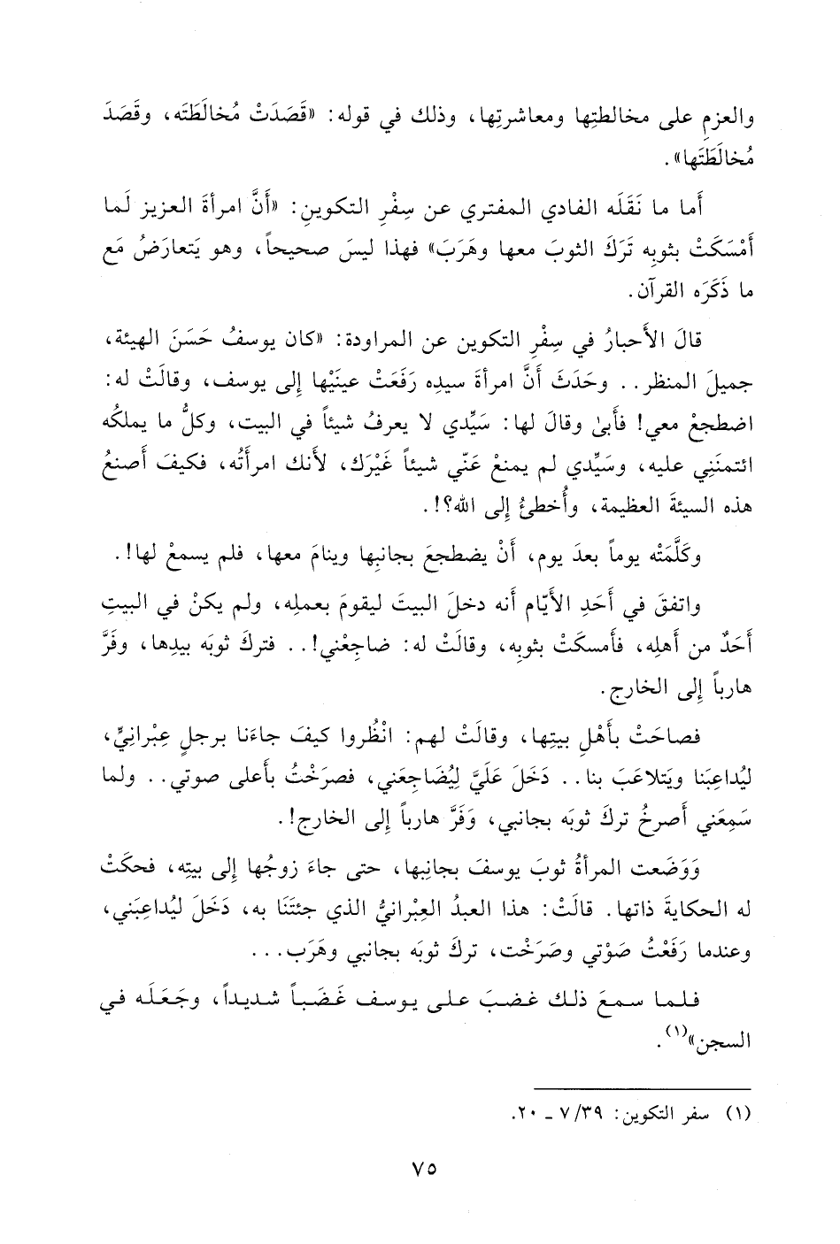 أَما ما نَقَلَه الفادي المفترِي عن سِفْرِ التكوينِ: " أَنَّ امرأةَ العزيز لَما