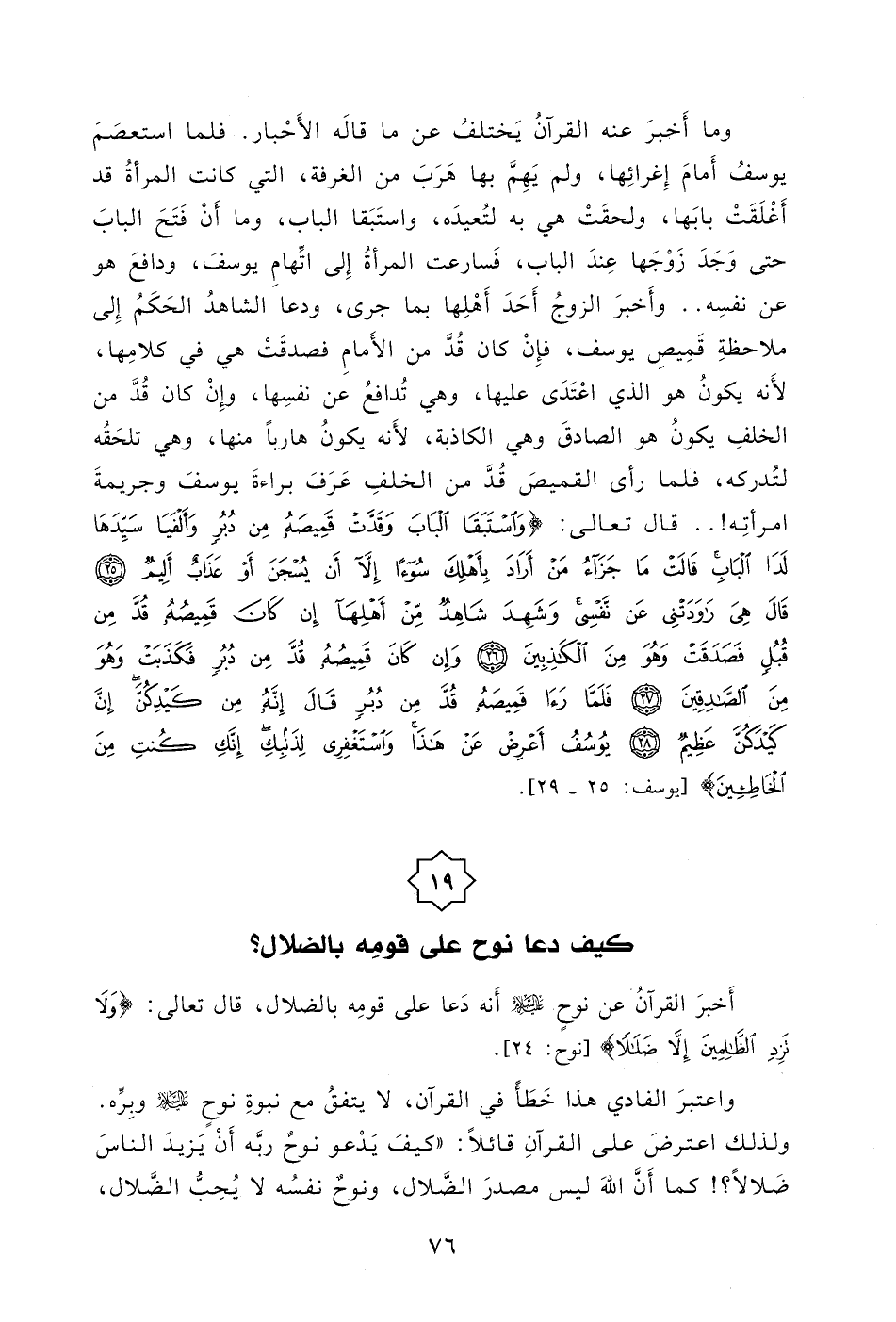 واعتبرَ الفادي هذا خَطَأً في القرآن، لا يتفقُ مع نبوةِ نوحٍ - صلى الله عليه وسلم - وبِرِّه.