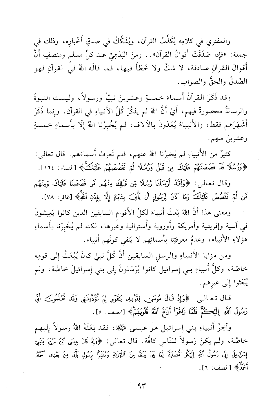 وقال تعالى: (وَلَقَدْ أَرْسَلْنَا رُسُلًا مِنْ قَبْلِكَ مِنْهُمْ مَنْ قَصَصْنَا عَلَيْكَ وَمِنْهُمْ مَنْ لَمْ نَقْصُصْ عَلَيْكَ وَمَا كَانَ لِرَسُولٍ أَنْ يَأْتِيَ بِآيَةٍ إِلَّا بِإِذْنِ اللَّهِ) .