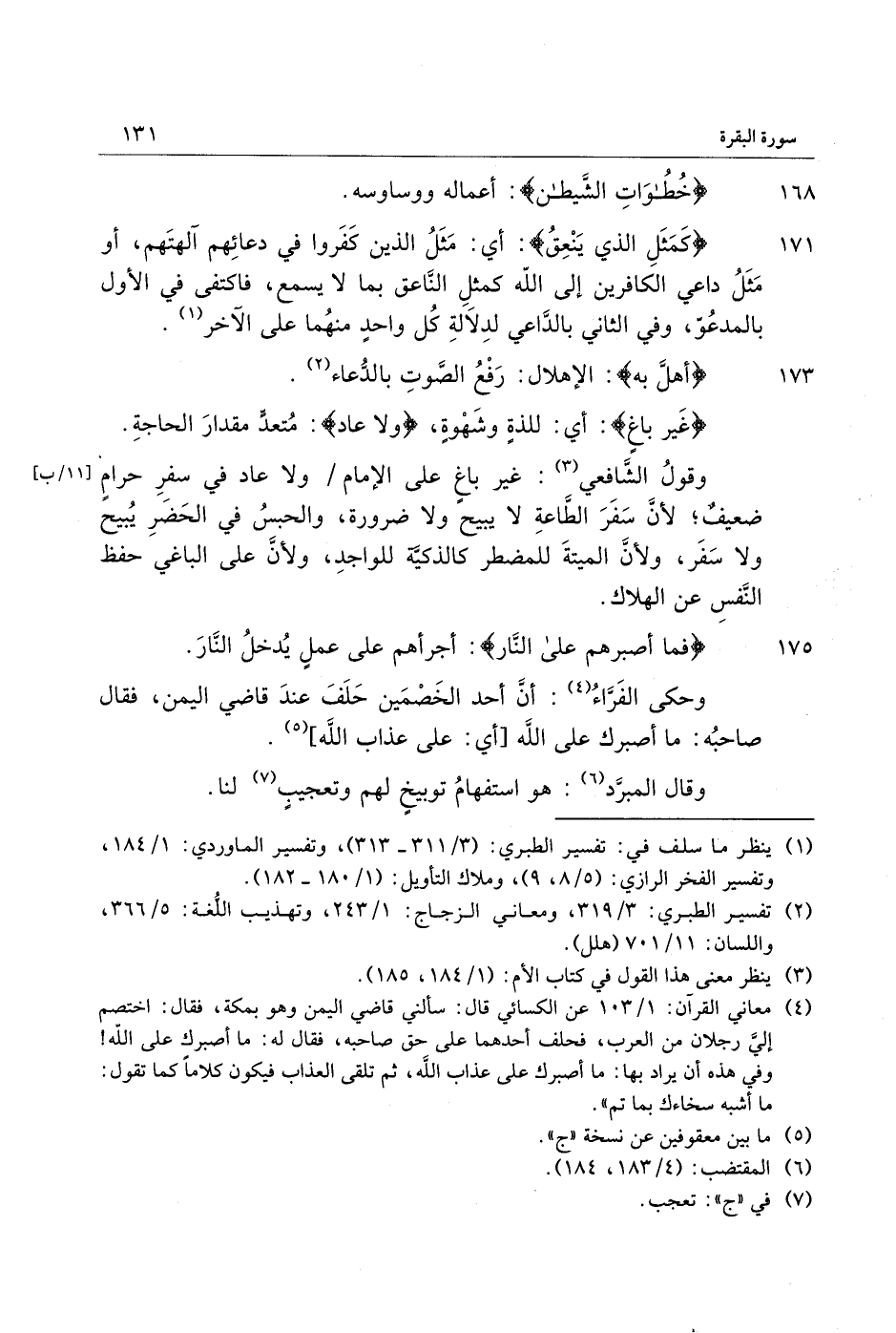 (1) ينظر ما سلف في: تفسير الطبري: (3/ 311- 313) ، وتفسير الماوردي: 1/ 184، وتفسير الفخر الرازي: (5/ 8، 9) ، وملاك التأويل: (1/ 180- 182) .