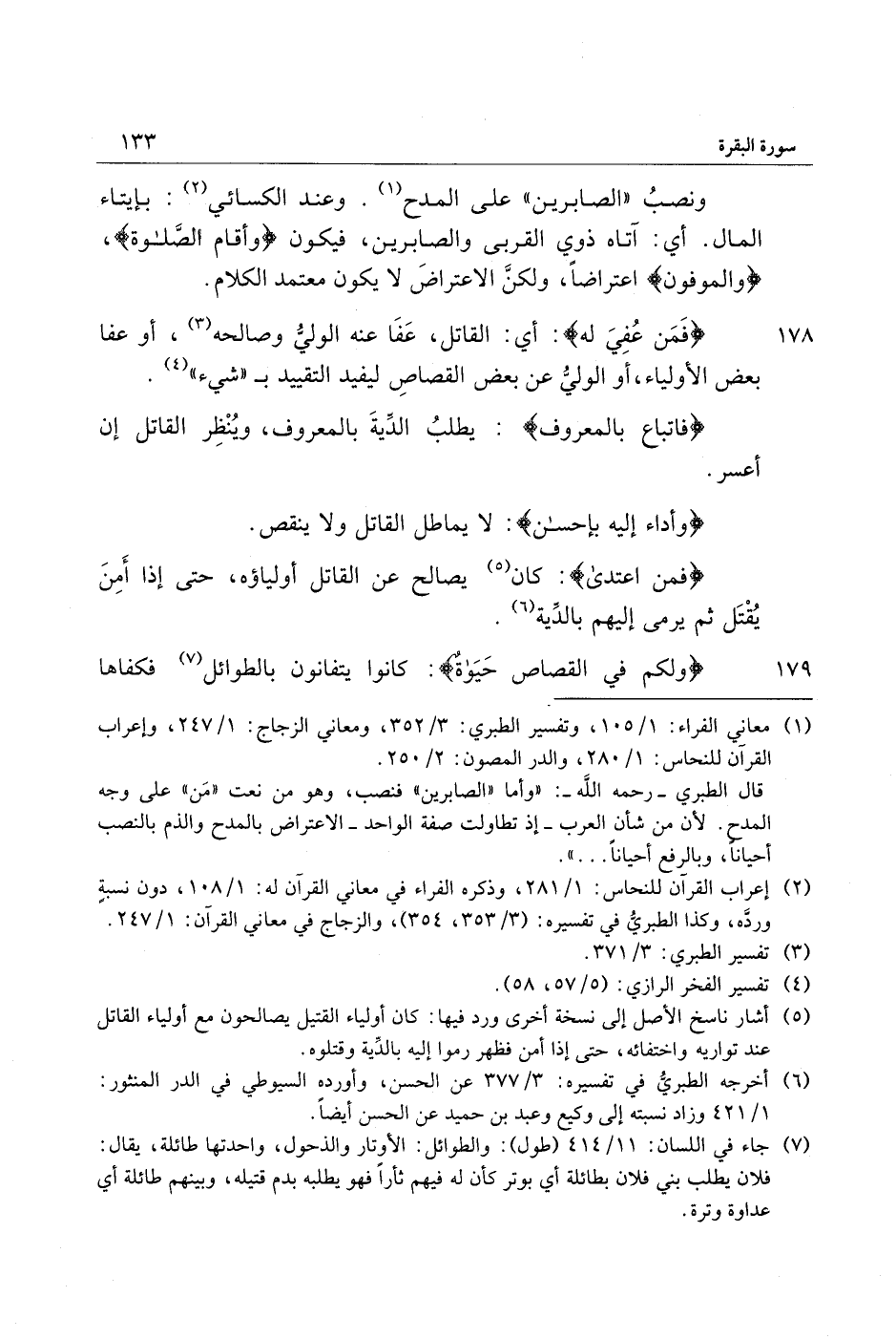 (2) إعراب القرآن للنحاس: 1/ 281، وذكره الفراء في معاني القرآن له: 1/ 108، دون نسبة وردّه، وكذا الطبريّ في تفسيره: (3/ 353، 354) ، والزجاج في معاني القرآن: 1/ 247.