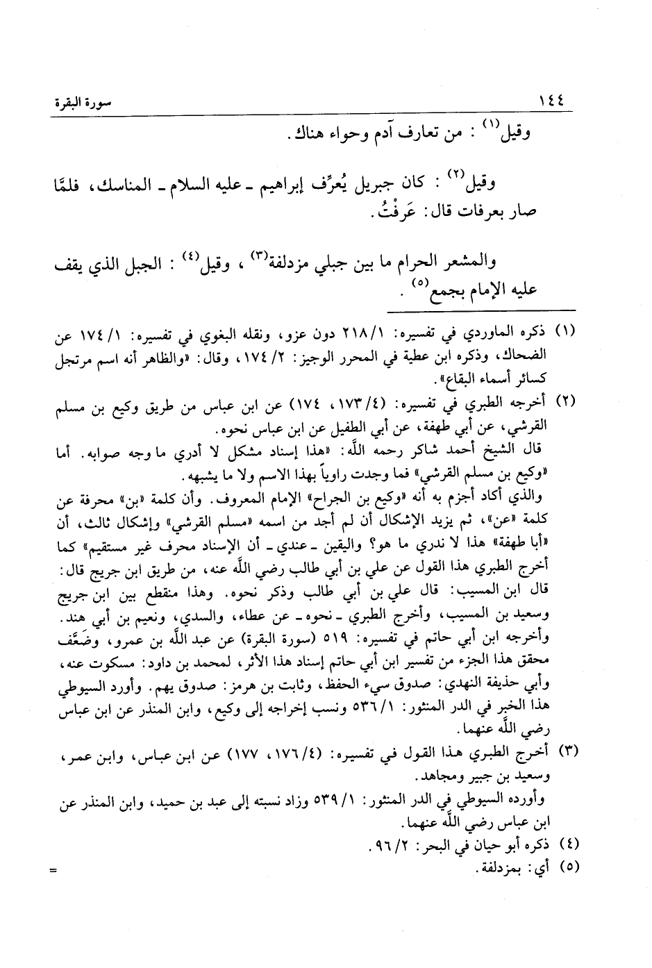والذي أكاد أجزم به أنه «وكيع بن الجراح» الإمام المعروف. وأن كلمة «بن» محرفة عن كلمة «عن» ، ثم يزيد الإشكال أن لم أجد من اسمه «مسلم القرشي» وإشكال ثالث، أن «أبا طهفة» هذا لا ندري ما هو؟ واليقين- عندي- أن الإسناد محرف غير مستقيم» كما أخرج الطبري هذا القول عن علي بن أبي طالب رضي الله عنه، من طريق ابن جريج قال: