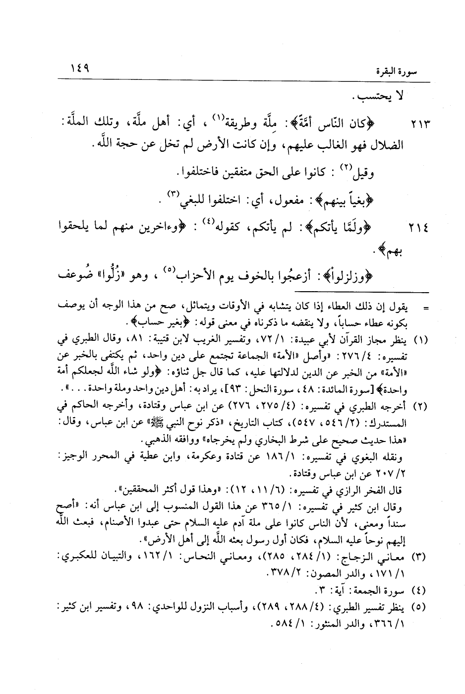 (1) ينظر مجاز القرآن لأبي عبيدة: 1/ 72، وتفسير الغريب لابن قتيبة: 81، وقال الطبري في تفسيره: 4/ 276: «وأصل «الأمة» الجماعة تجتمع على دين واحد، ثم يكتفى بالخبر عن «الأمة» من الخبر عن الدين لدلالتها عليه، كما قال جل ثناؤه: وَلَوْ شاءَ اللَّهُ لَجَعَلَكُمْ أُمَّةً واحِدَةً [سورة المائدة: 48، سورة النحل: 93] ، يراد به: أهل دين واحد وملة واحدة ... » .