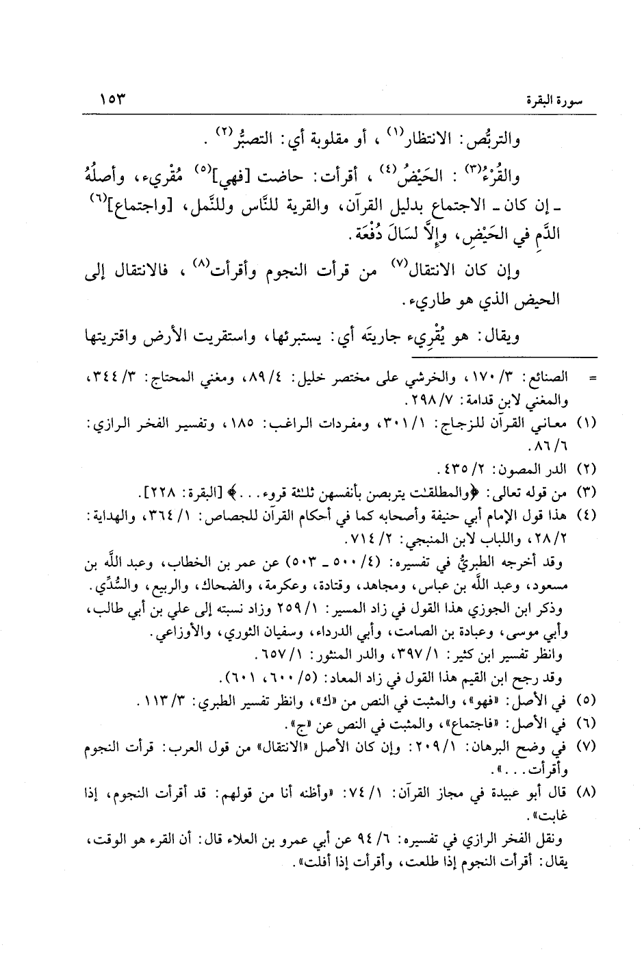 (7) في وضح البرهان: 1/ 209: وإن كان الأصل «الانتقال» من قول العرب: قرأت النجوم وأقرأت ... » .