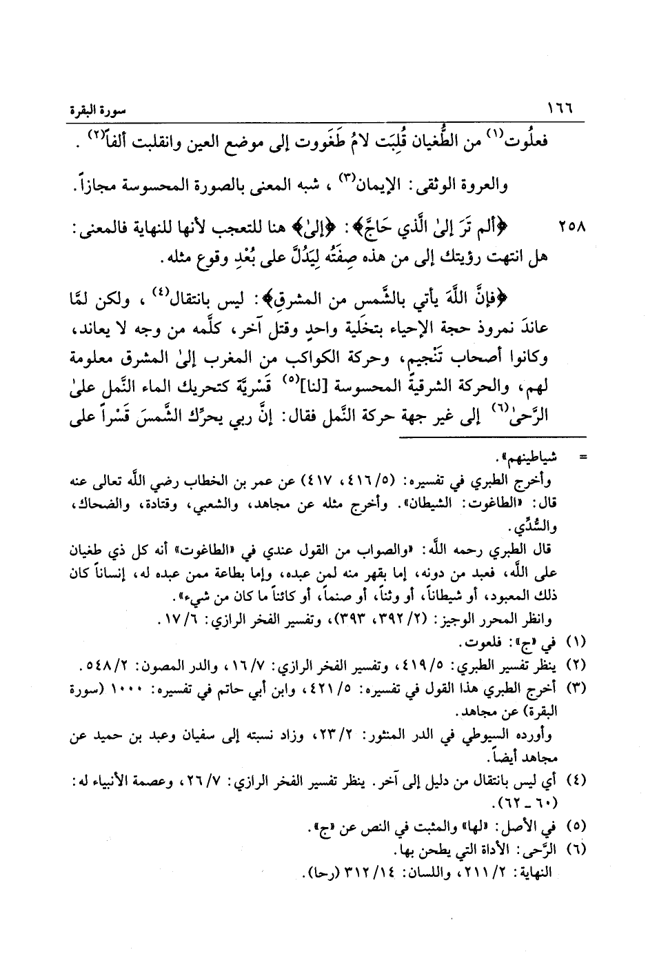 258 أَلَمْ تَرَ إِلَى الَّذِي حَاجَّ: «إلى» هنا للتعجب لأنها للنهاية فالمعنى:
