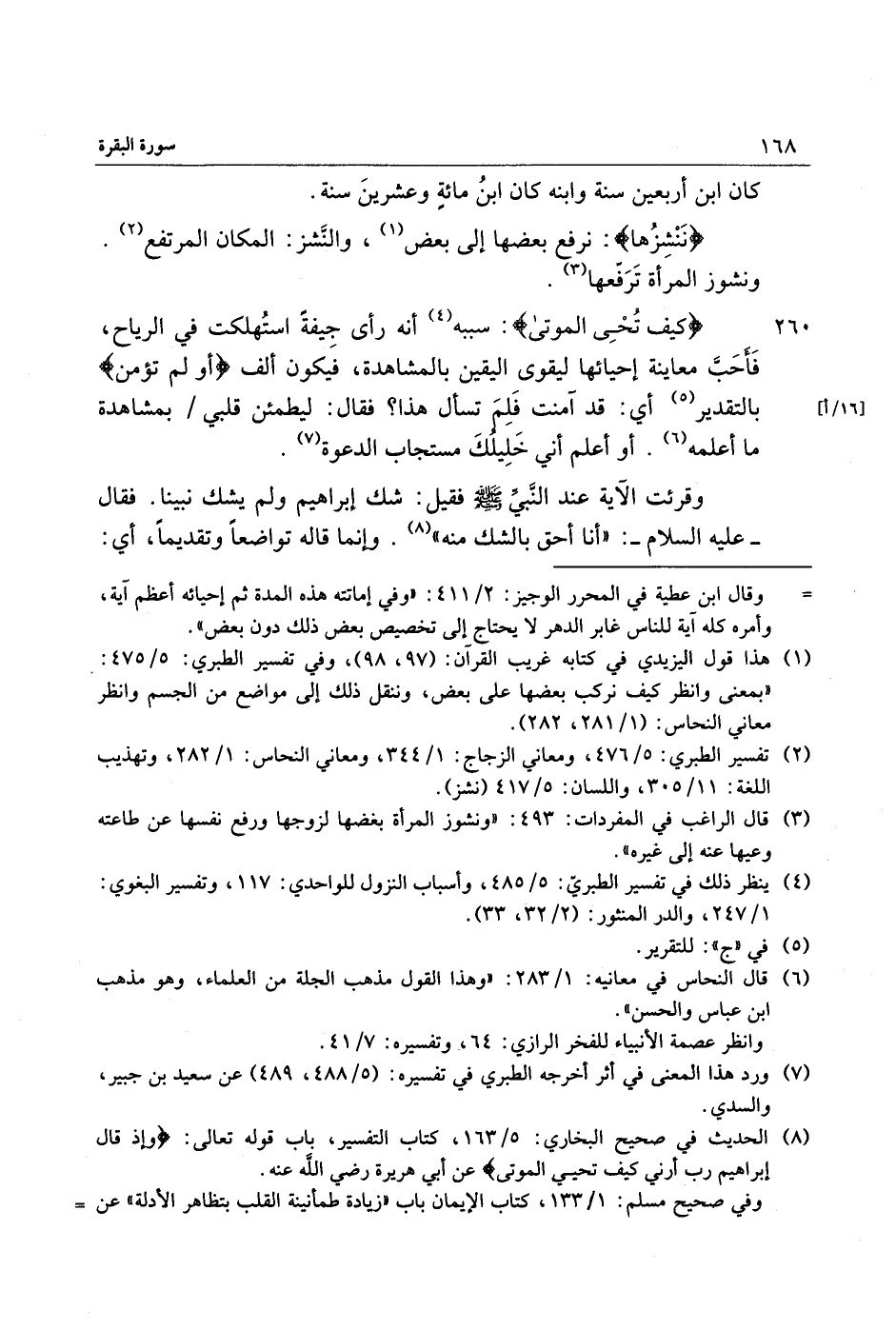 (8) الحديث في صحيح البخاري: 5/ 163، كتاب التفسير، باب قوله تعالى: وَإِذْ قالَ إِبْراهِيمُ رَبِّ أَرِنِي كَيْفَ تُحْيِ الْمَوْتى عن أبي هريرة رضي الله عنه.