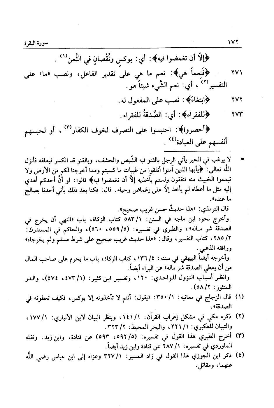 273 لِلْفُقَراءِ: أي: الصّدقة للفقراء.