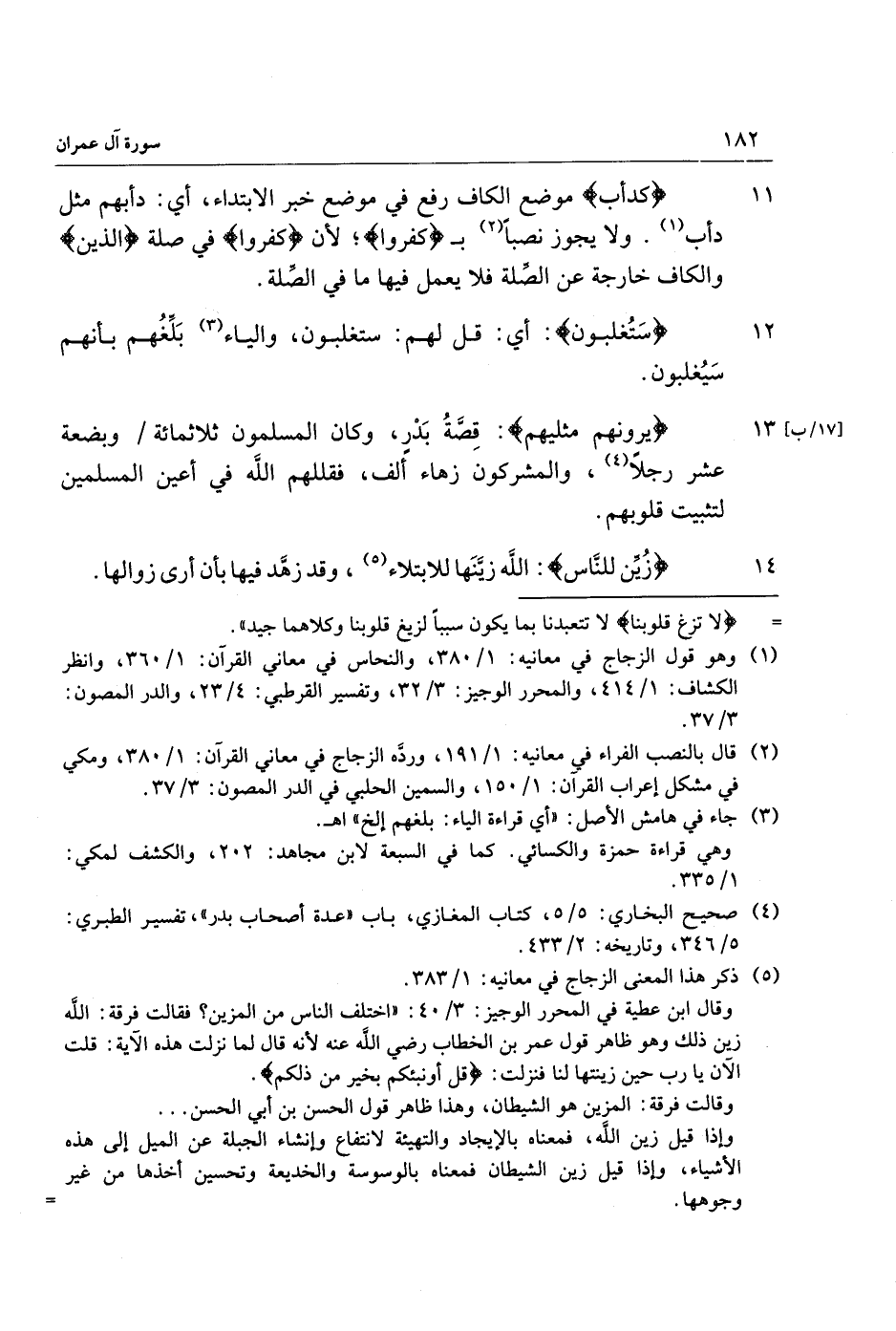 (2) قال بالنصب الفراء في معانيه: 1/ 191، وردّه الزجاج في معاني القرآن: 1/ 380، ومكي في مشكل إعراب القرآن: 1/ 150، والسمين الحلبي في الدر المصون: 3/ 37.