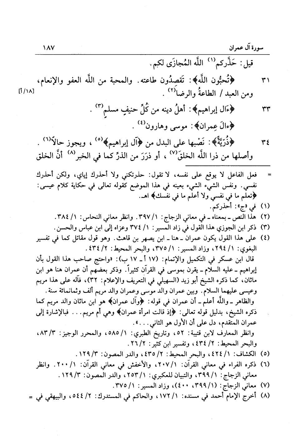 (4) على هذا القول يكون عمران- هنا- ابن يصهر بن قاهث. وهو قول مقاتل كما في تفسير البغوي: 1/ 294، وزاد المسير: 1/ 375، والبحر المحيط: 2/ 434.