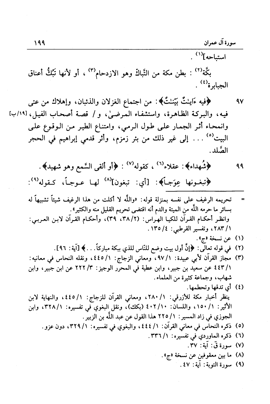 (2) في قوله تعالى: إِنَّ أَوَّلَ بَيْتٍ وُضِعَ لِلنَّاسِ لَلَّذِي بِبَكَّةَ مُبارَكاً ... [آية: 96] .