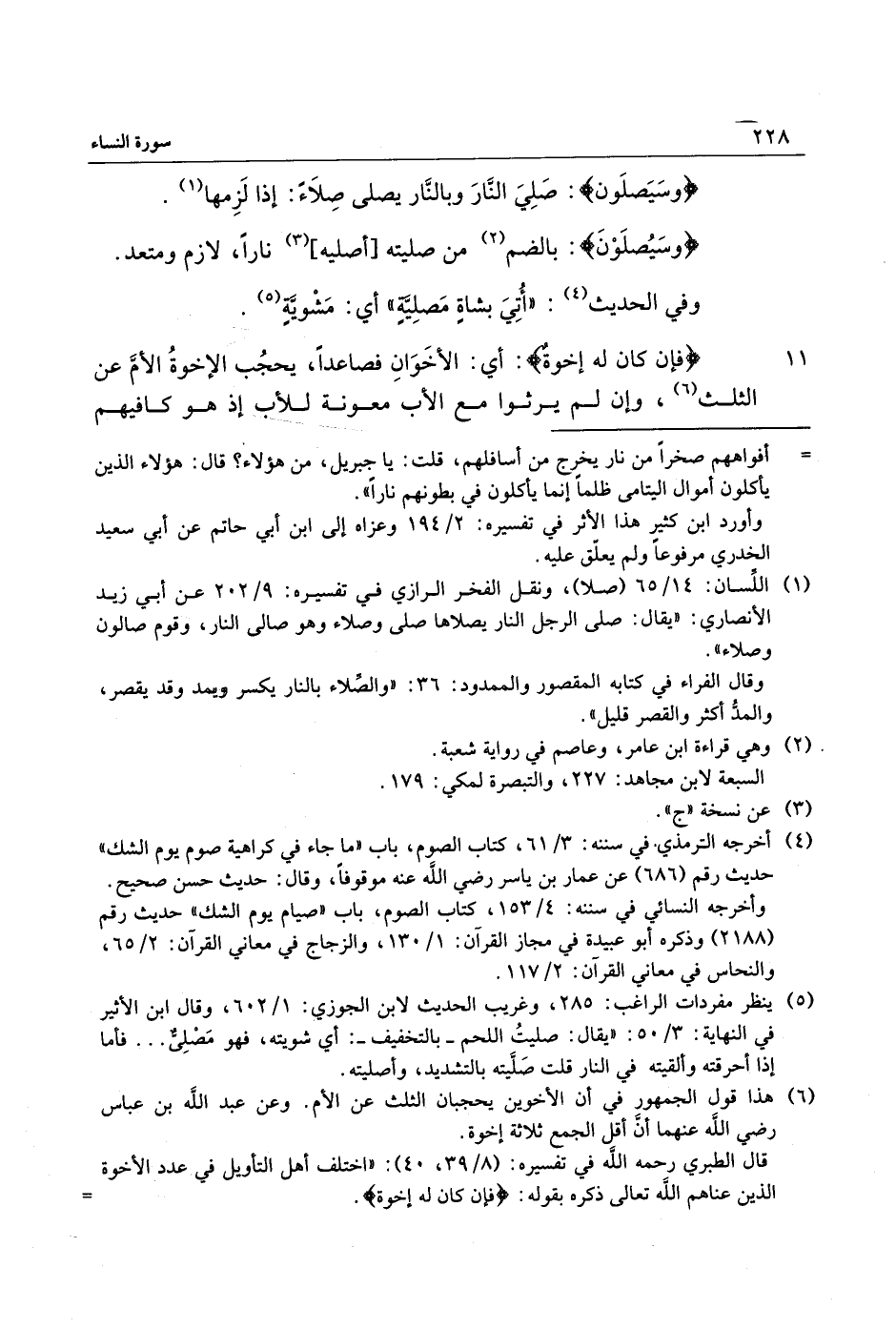 (6) هذا قول الجمهور في أن الأخوين يحجبان الثلث عن الأم. وعن عبد الله بن عباس رضي الله عنهما أنّ أقل الجمع ثلاثة إخوة.