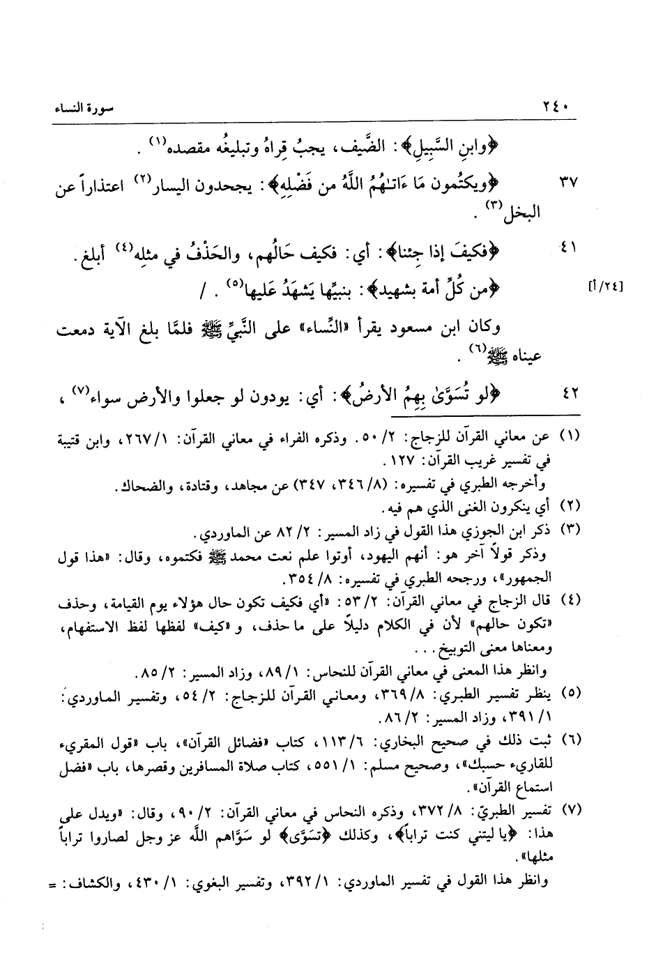 وكان ابن مسعود يقرأ «النّساء» على النّبيّ صلّى الله عليه وسلّم فلمّا بلغ الآية دمعت عيناه صلّى الله عليه وسلّم «6» .