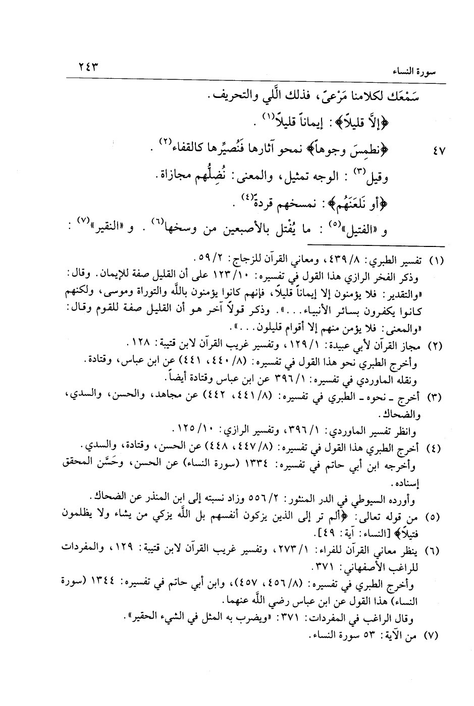 وأخرج الطبري في تفسيره: (8/ 456، 457) ، وابن أبي حاتم في تفسيره: 1344 (سورة النساء) هذا القول عن ابن عباس رضي الله عنهما.