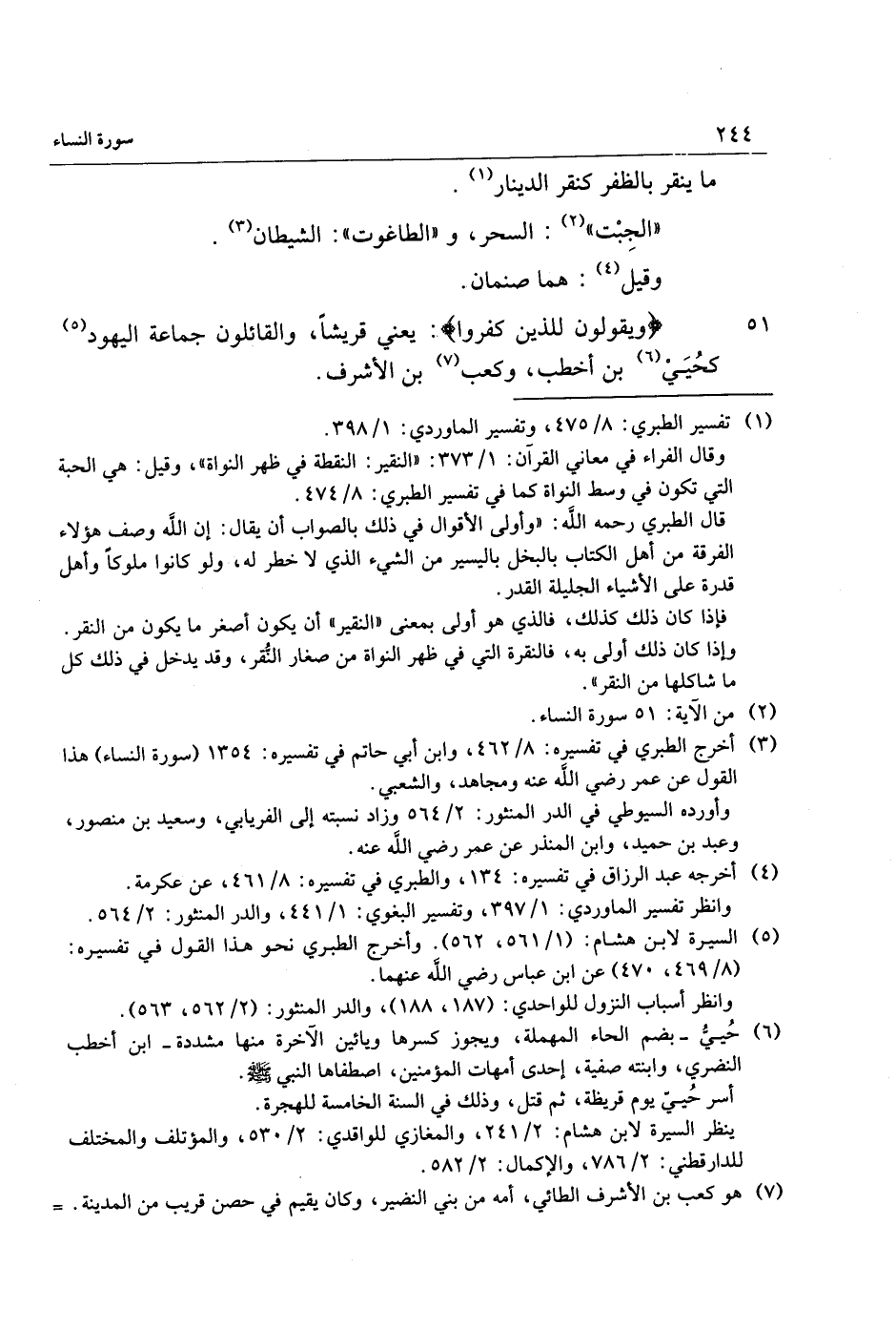 (3) أخرج الطبري في تفسيره: 8/ 462، وابن أبي حاتم في تفسيره: 1354 (سورة النساء) هذا القول عن عمر رضي الله عنه ومجاهد، والشعبي.