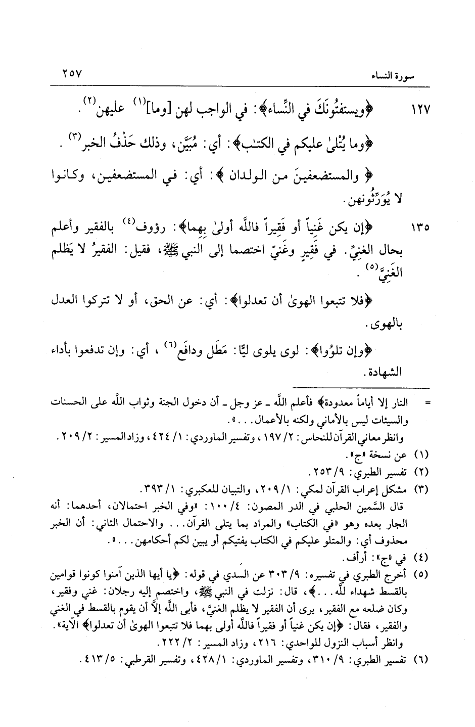 (6) تفسير الطبري: 9/ 310، وتفسير الماوردي: 1/ 428، وتفسير القرطبي: 5/ 413.