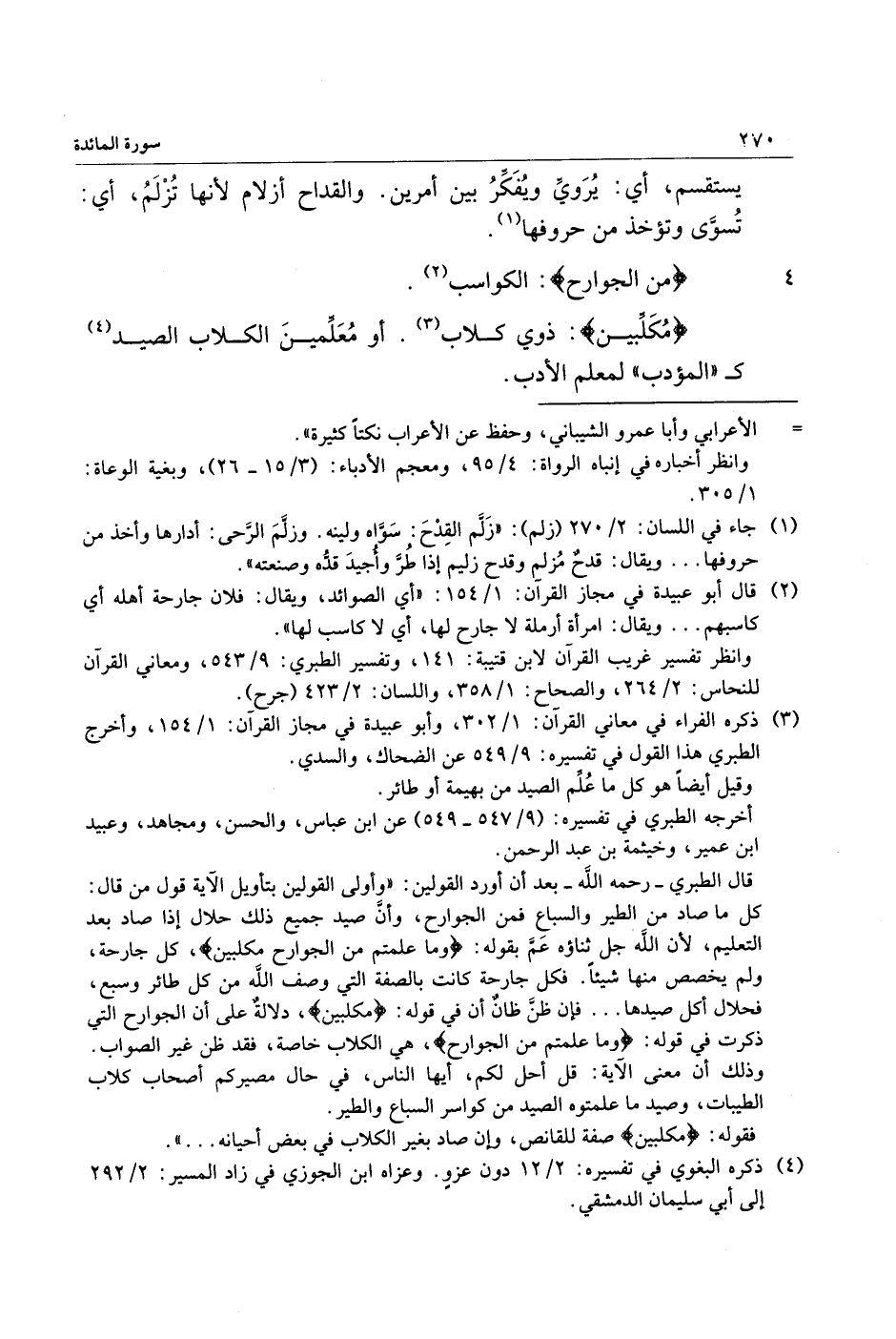(2) قال أبو عبيدة في مجاز القرآن: 1/ 154: «أي الصوائد، ويقال: فلان جارحة أهله أي كاسبهم ... ويقال: امرأة أرملة لا جارح لها، أي لا كاسب لها» .