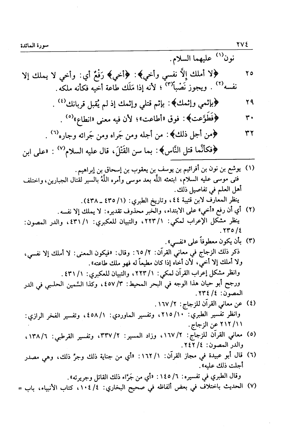 25 لا أَمْلِكُ إِلَّا نَفْسِي وَأَخِي: أَخِي رفع أي: وأخي لا يملك إلا نفسه «2» . ويجوز نصبا «3» لأنه إذا ملك طاعة أخيه فكأنه ملكه.