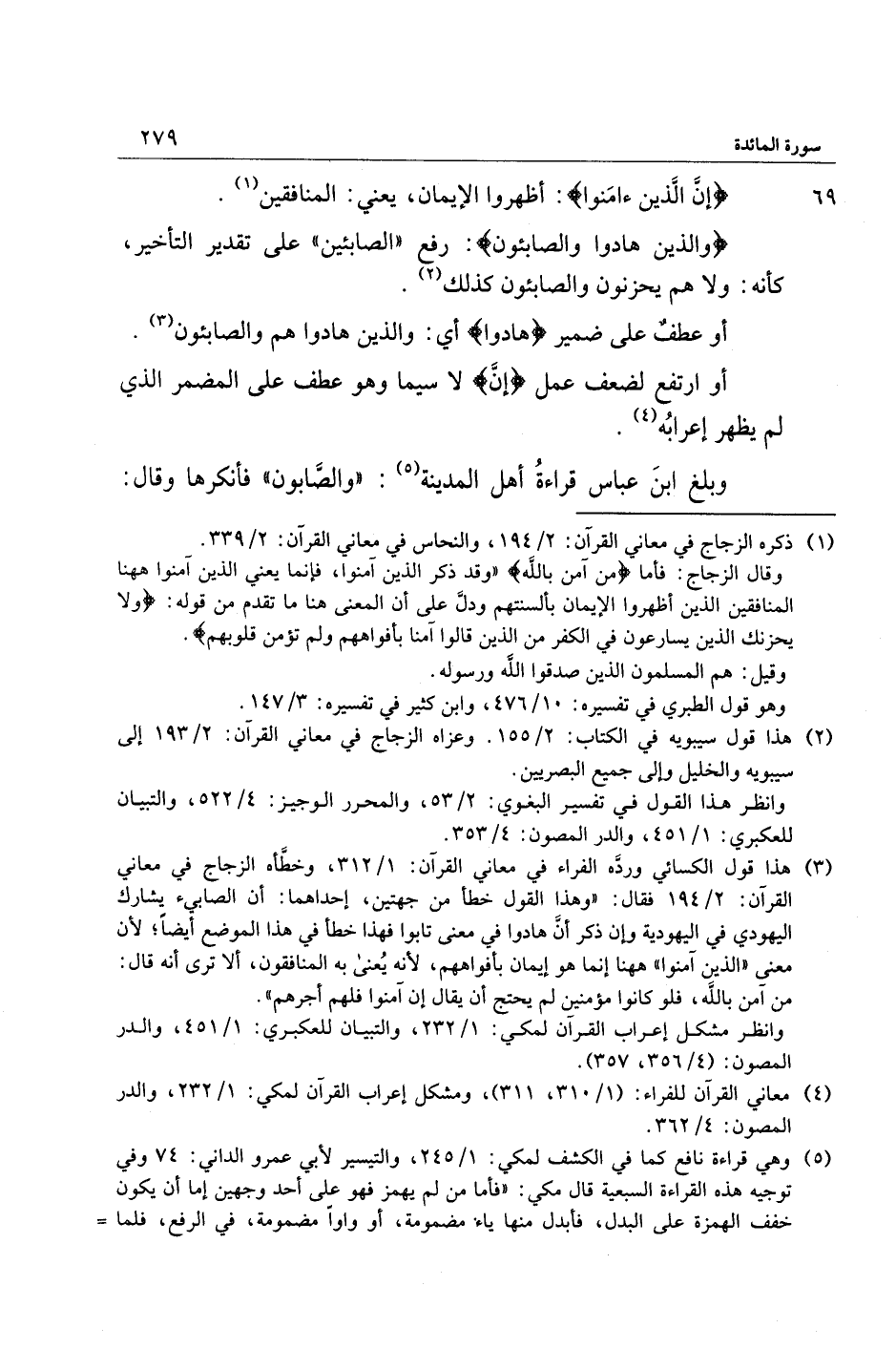 وَالَّذِينَ هادُوا وَالصَّابِئُونَ: رفع «الصابئين» على تقدير التأخير، كأنه: ولا هم يحزنون والصابئون كذلك «2» .